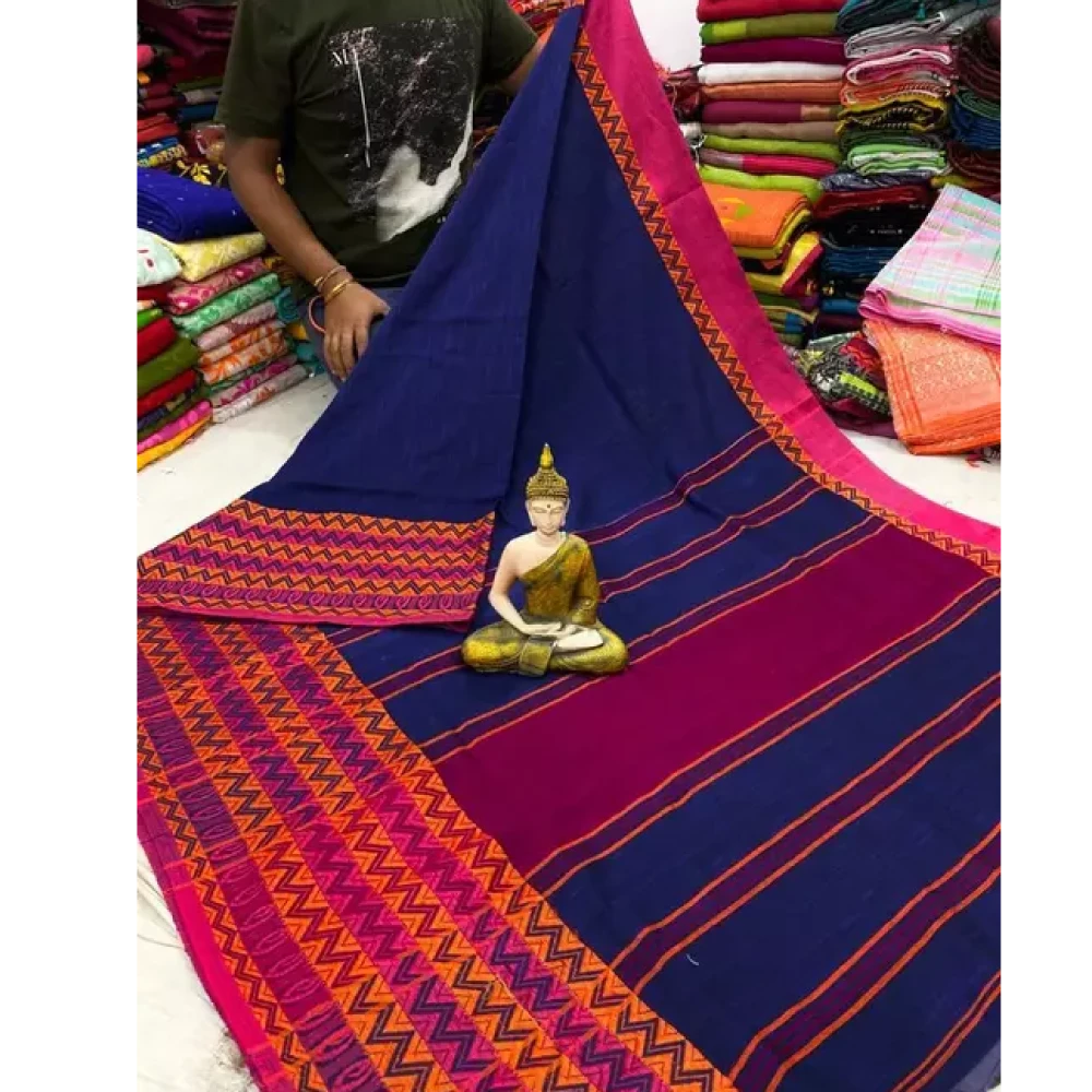 Introducing the New Begampuri Saree – a testament to the timeless charm of Indian handloom, meticulously crafted from the finest Khadi Cotton. Elevate your ethnic wardrobe with this exquisite ensemble that seamlessly blends tradition and contemporary style.