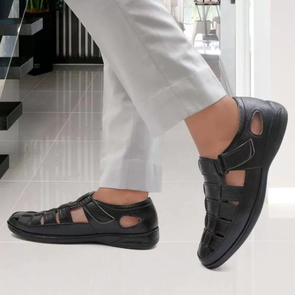Latest Stylish Men Faux Outdoor Black Sandal For Mens