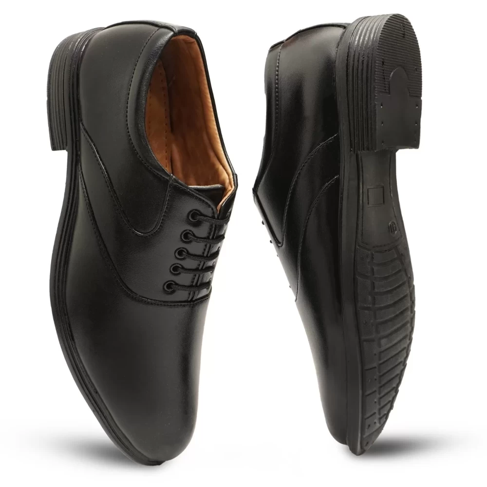Mens Casual Faux Leather Solid Lace Up Black Formal Shoes