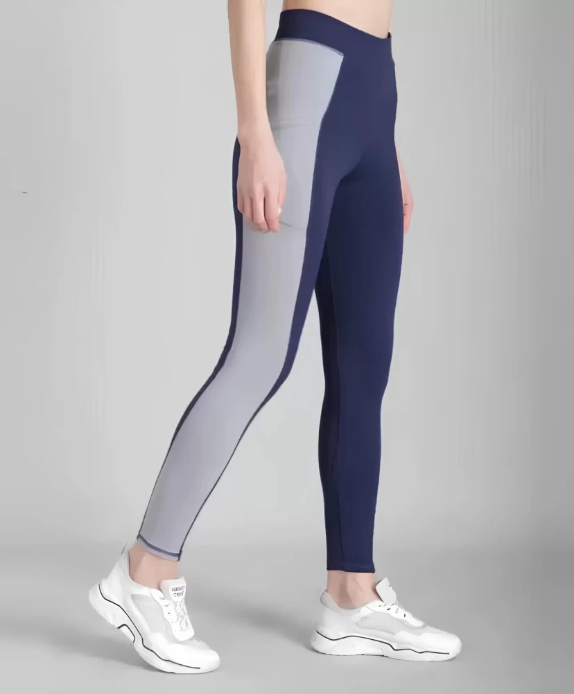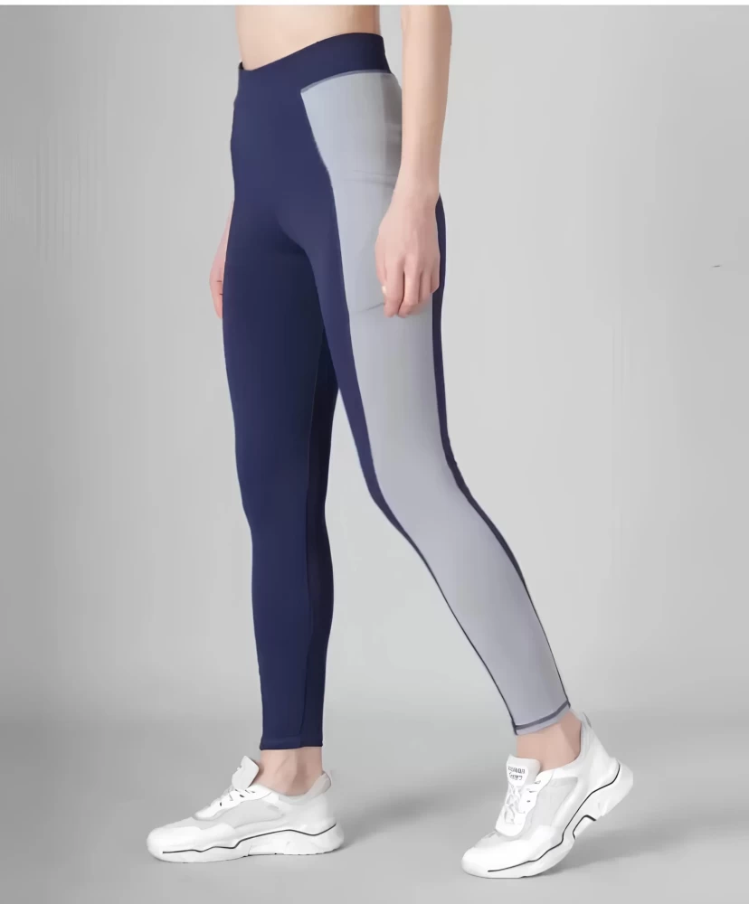 Women Ankle Length Stretchable Tights Navy Blue and Grey