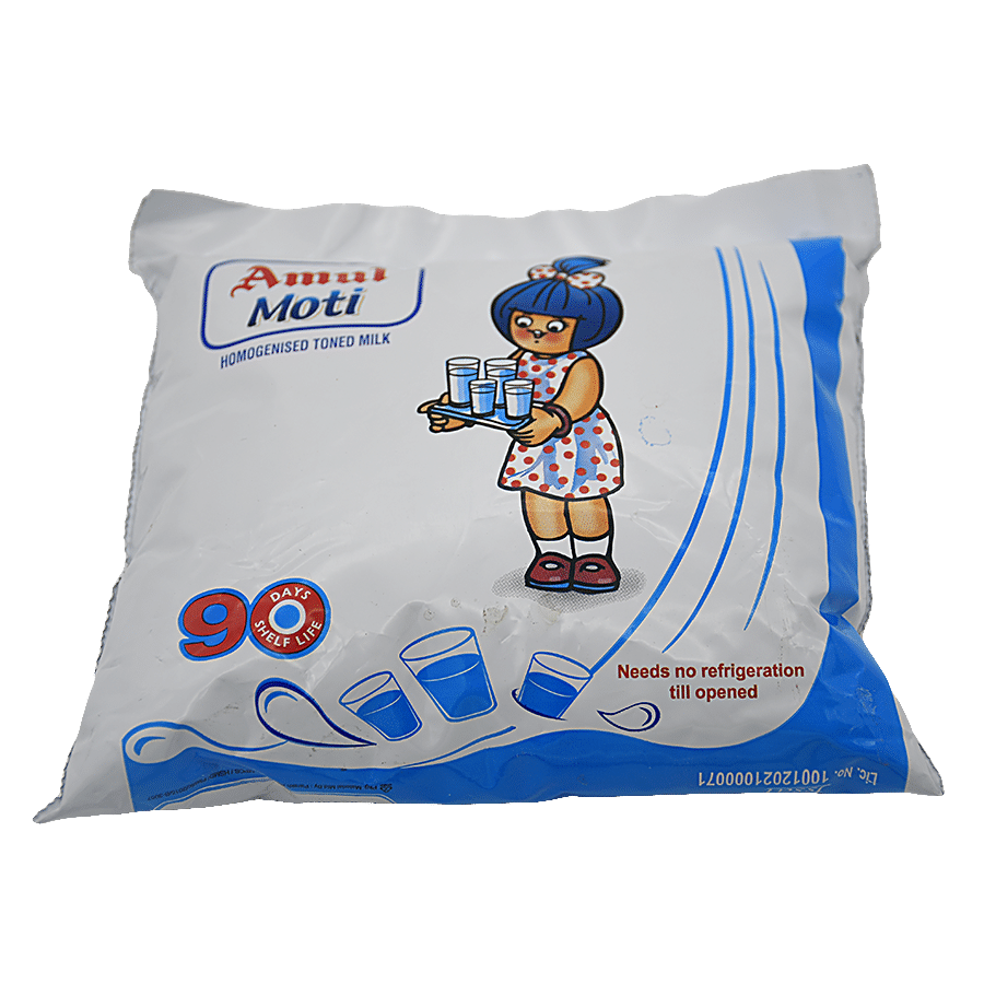 Amul Moti Toned Milk has 3.0% fat and 8.5% non-fat solids. It is perfect for whitening tea/coffee and for the preparation of solid curd. Amul Moti Homogenised Toned Milk is a high-quality dairy product from Amul, renowned for its rich taste and nutritional benefits. This milk undergoes homogenization to ensure a smooth, creamy texture and consistent quality, making it perfect for daily consumption. Packed with essential nutrients like calcium, protein, and vitamins, it supports overall health and wellness. Whether enjoyed on its own, with cereals, or in your favourite recipes, Amul Moti Homogenised Toned Milk delivers a delightful and wholesome experience. Ideal for all ages, it combines purity and taste, embodying Amul's trusted legacy in every drop.