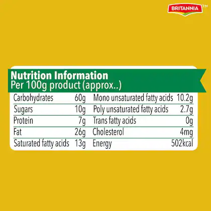 Britannia 50-50 Maska Chaska Salted Biscuits are prepared with the goodness of butter and peppered with the choicest of herbs. Crunchy and crispy, these biscuits have a light, savoury taste with buttery flavours. Britannia biscuits, cookies, cakes and rusk are a perfect companion for your tea. Believing in delivering fresh and healthy products, Britannia India manufactures some of India's favourite brands like Good Day, Tiger, NutriChoice, Bourbon, Milk Bikis and Marie Gold.