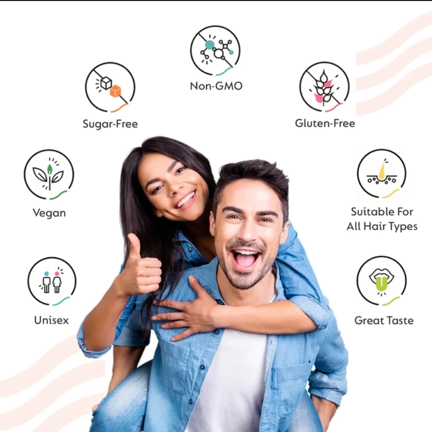 Sugar-Free Delights for All - Indulge guilt-free in these delightful gummy candies, crafted without added sugar and infused with biotin for hair growth and essential vitamins. Take two gummies daily after meals for visible results.