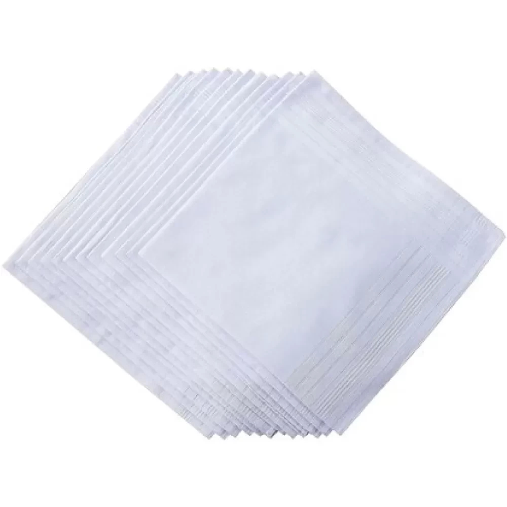 Men White cotton Handkerchiefs Pack of 12