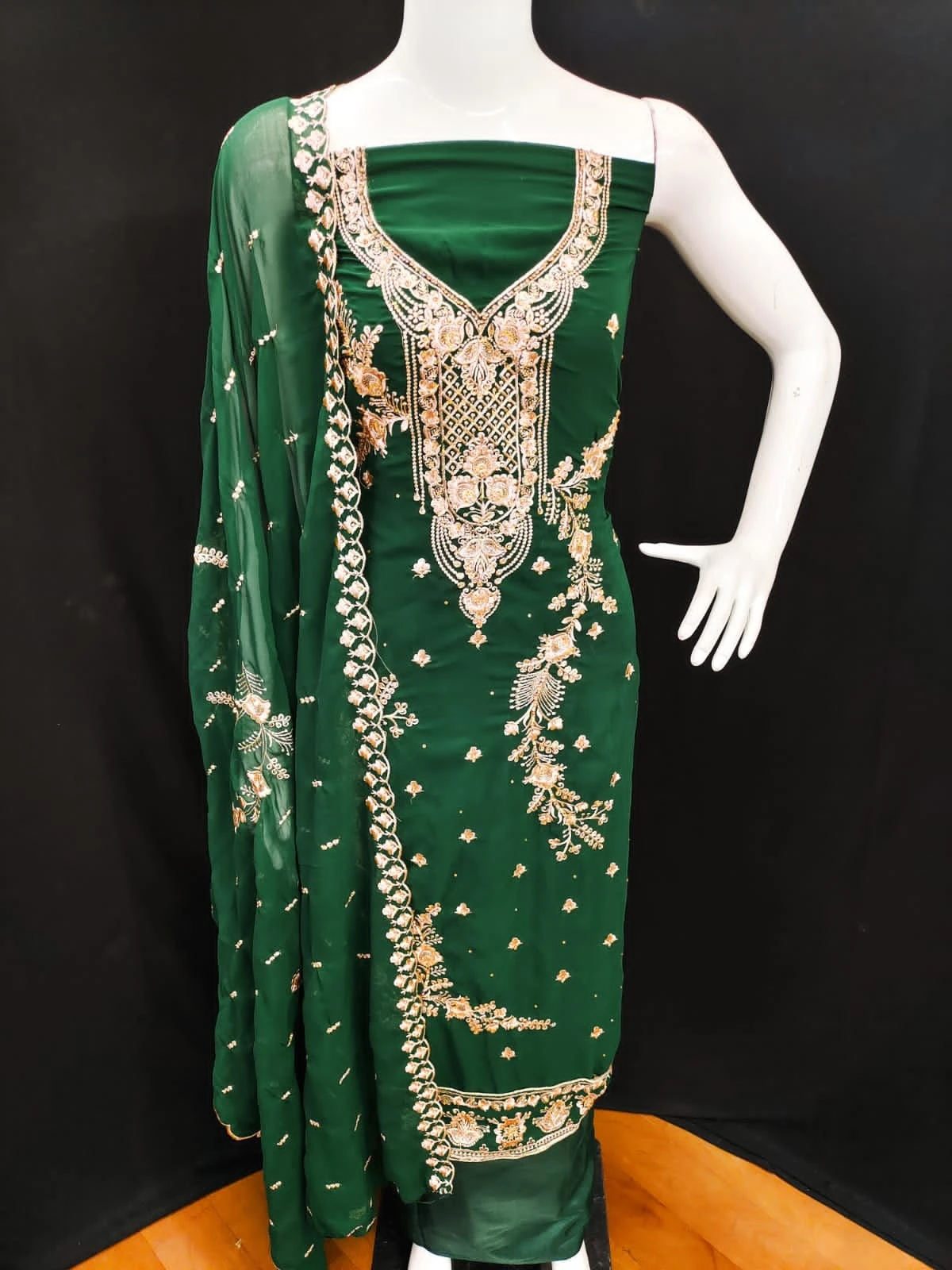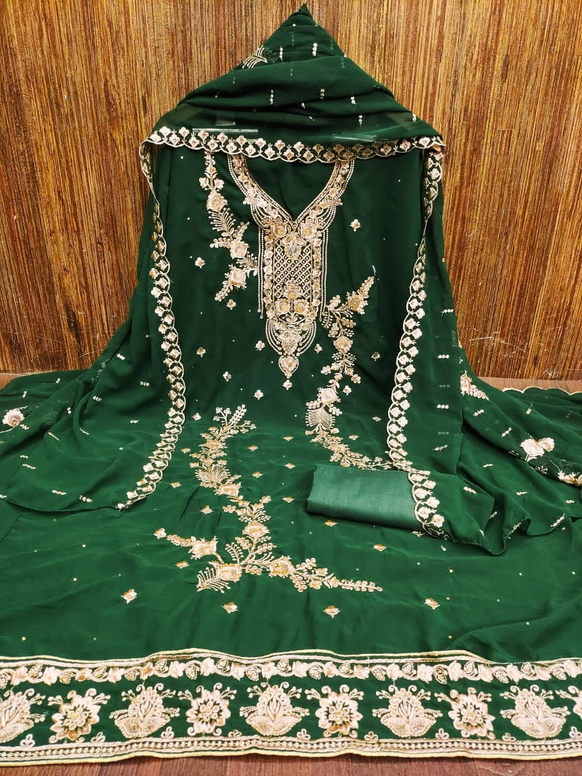 GEORGGETTE Dark Green Salwar Suit Material WITH ZARI EMBROIDERY
