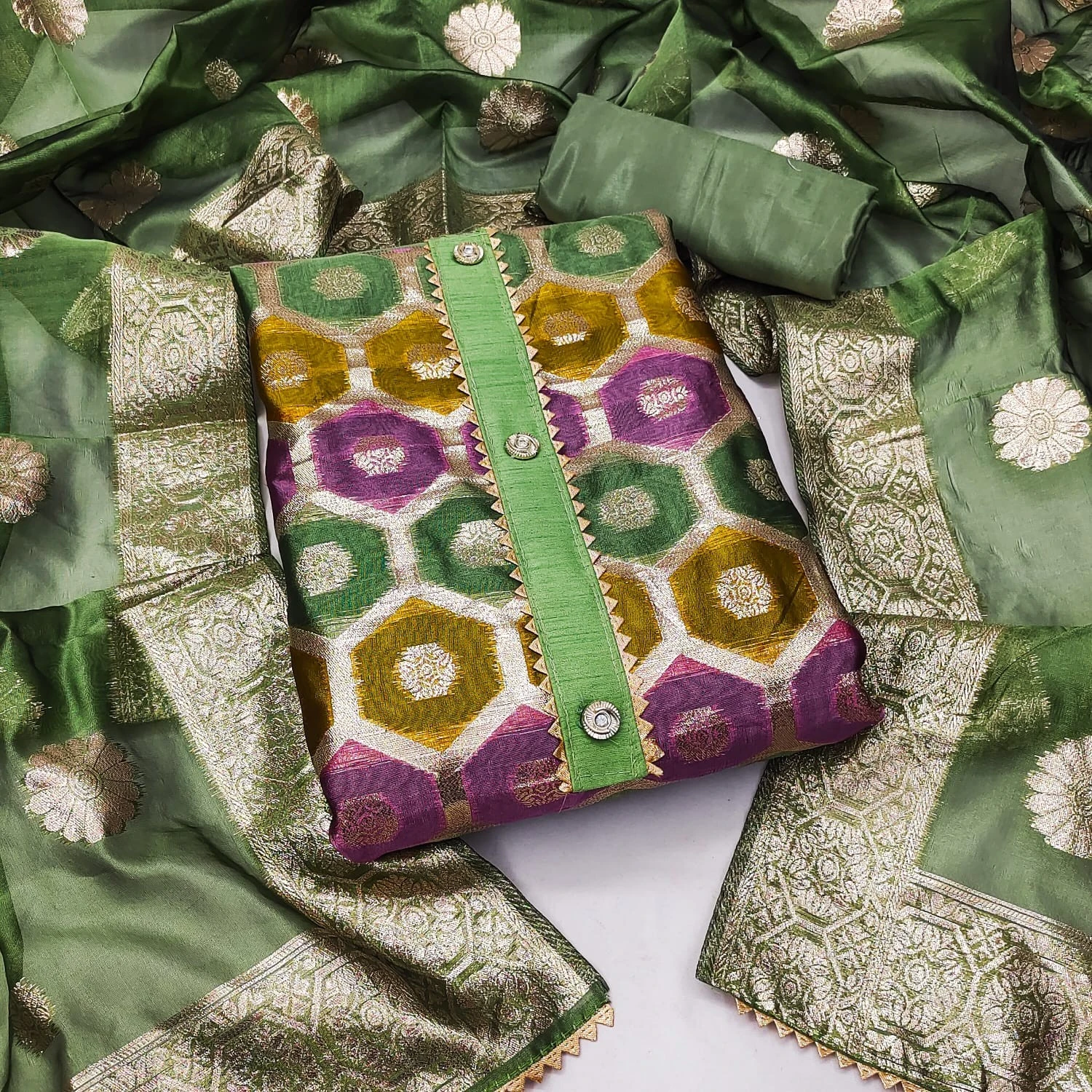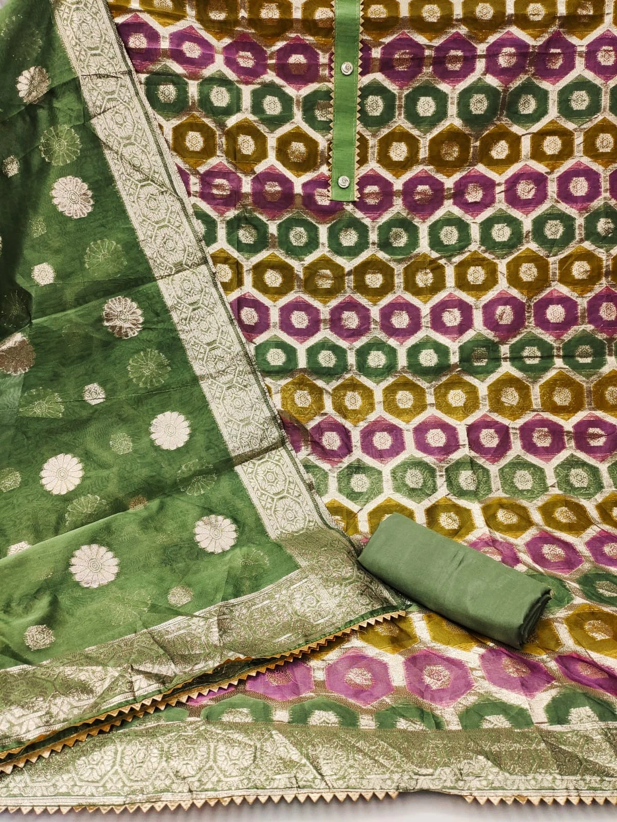 ORGANZA BANARASI JACQUARD Green Dress Material