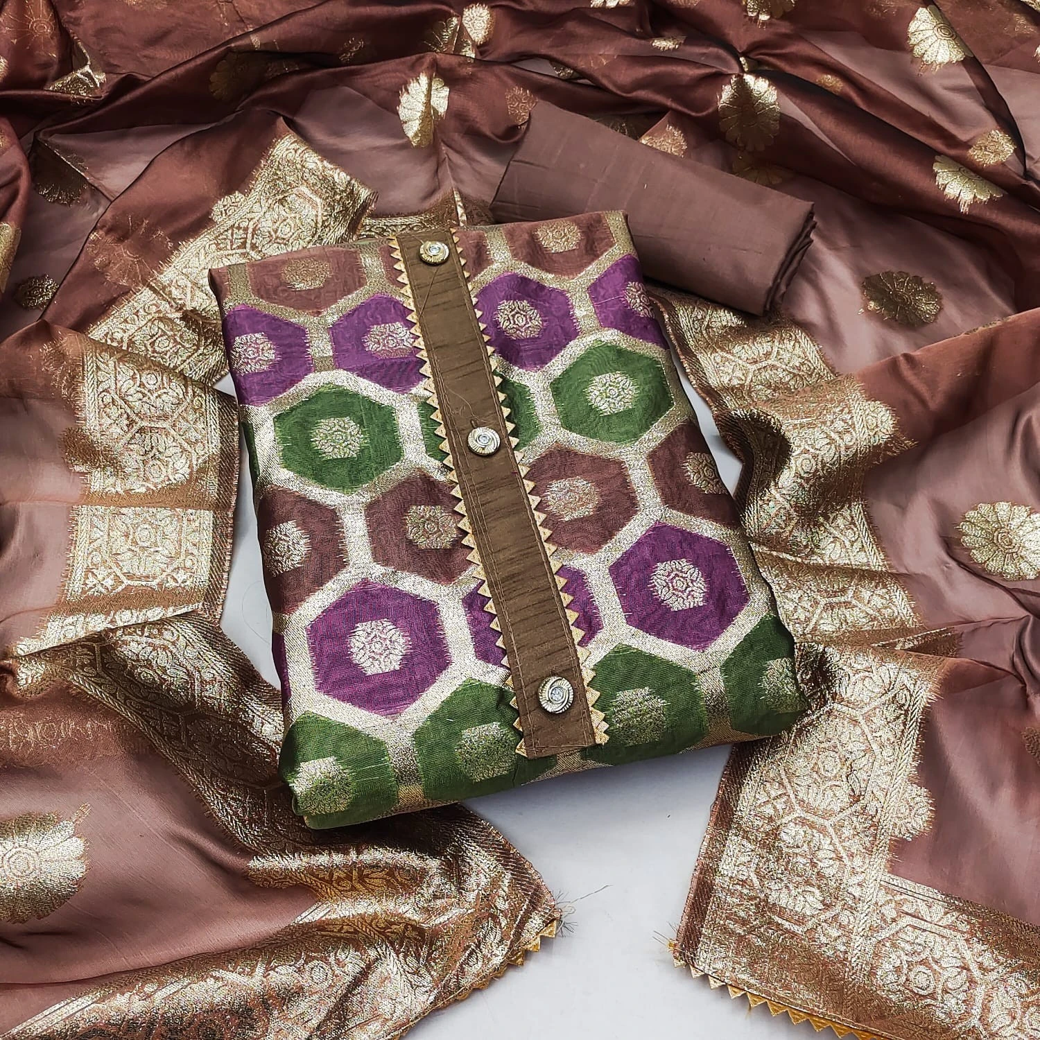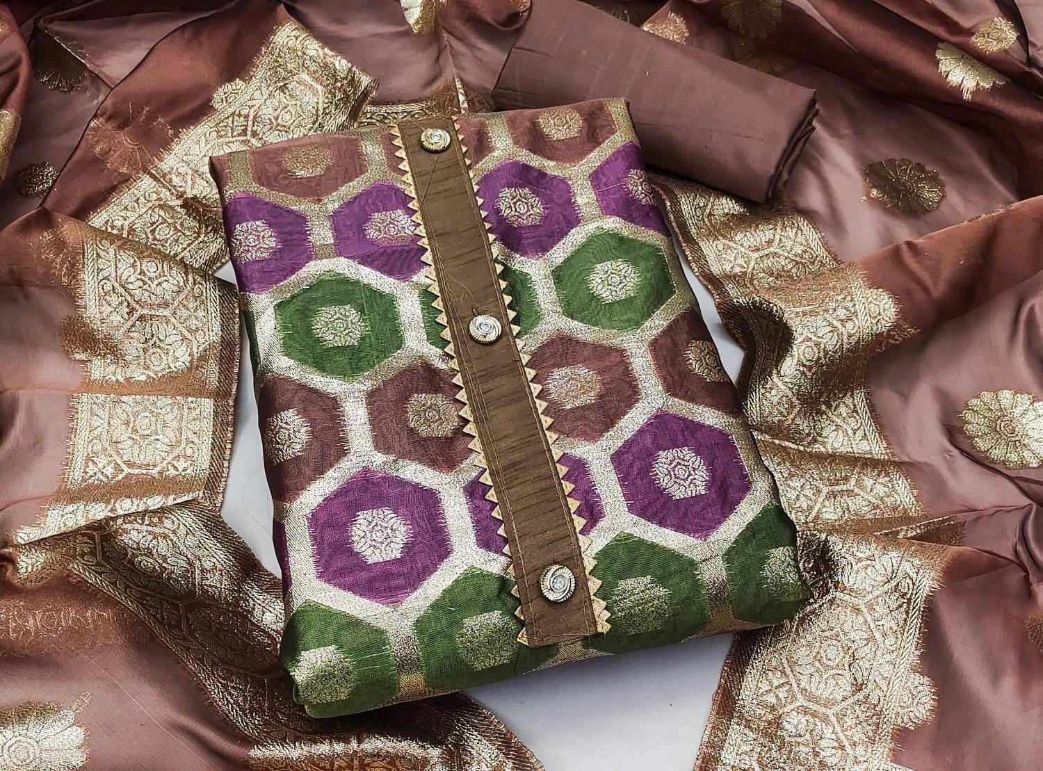 ORGANZA BANARASI JACQUARD Melon Dress Material