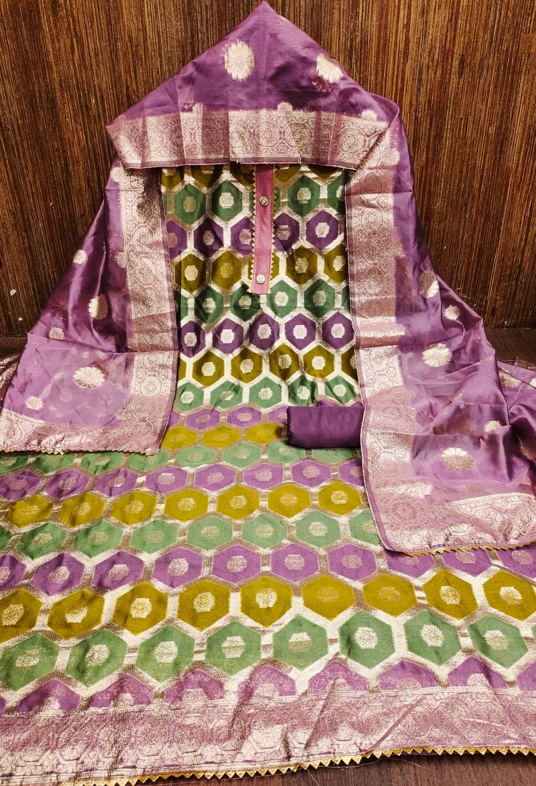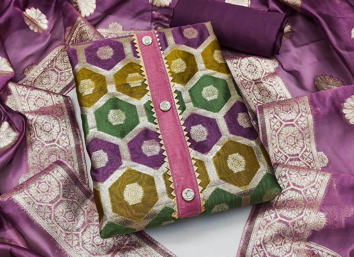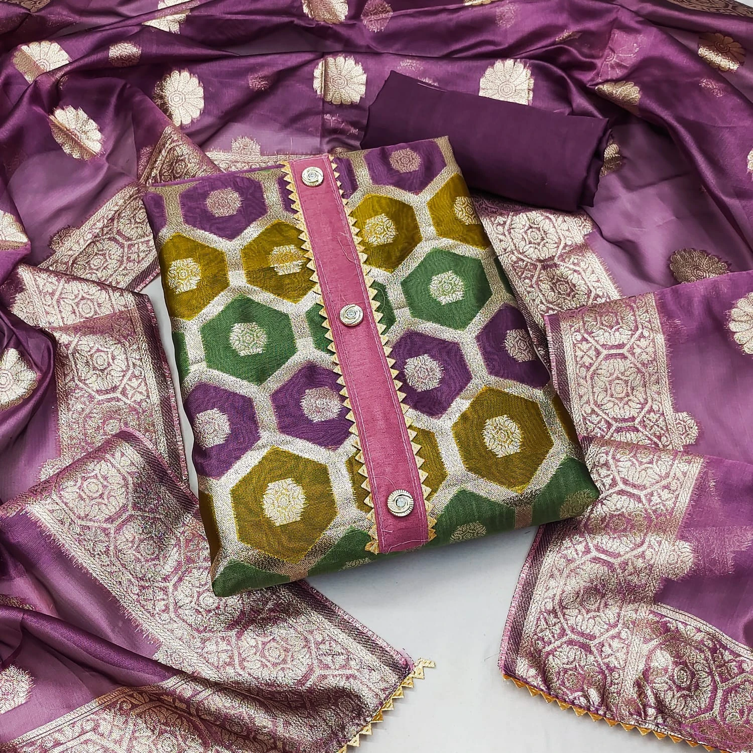 ORGANZA BANARASI JACQUARD Purple Dress Material