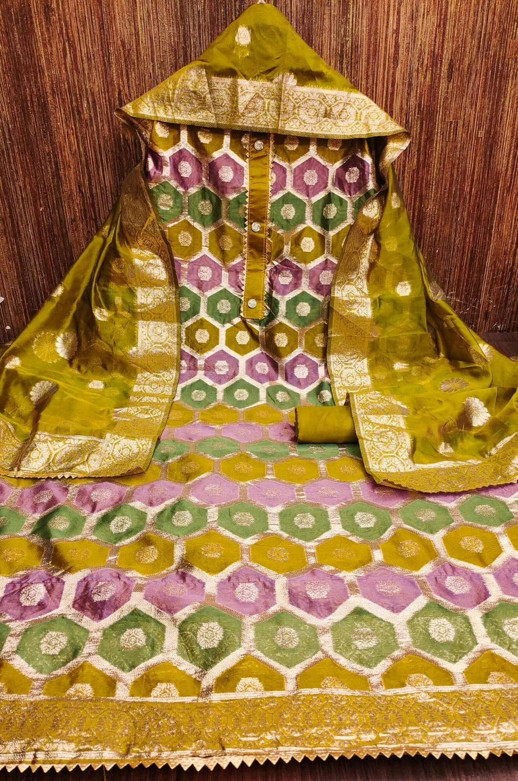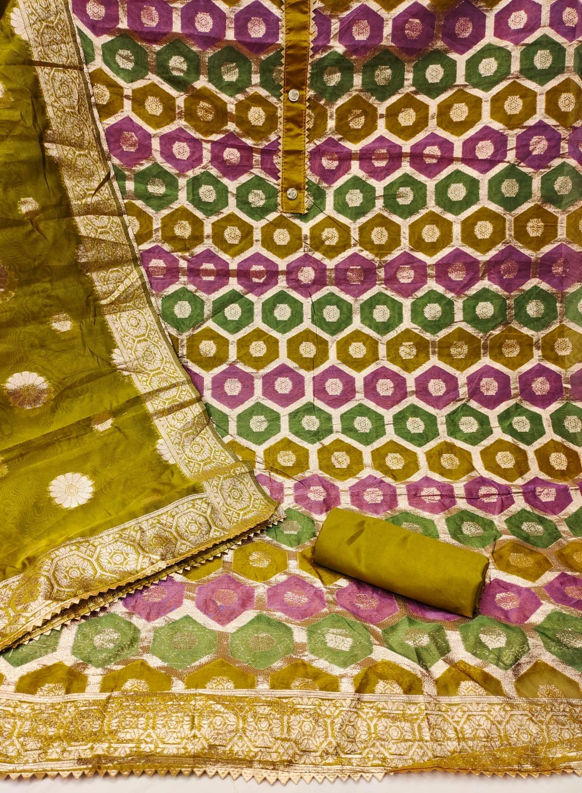 ORGANZA BANARASI JACQUARD Yellow Dress Material