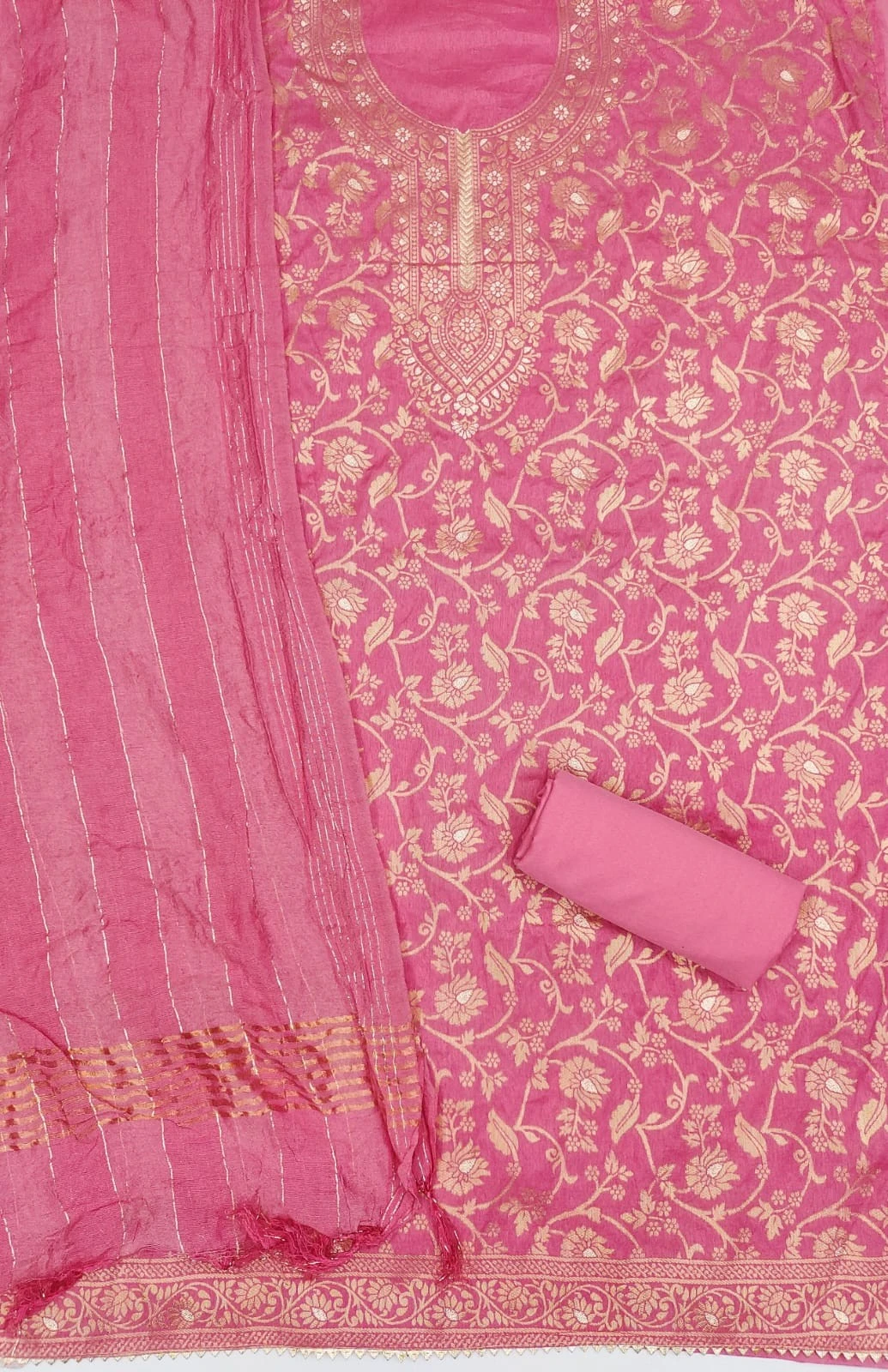 Pink UNSTITCHED Banarasi Silk Dress Material