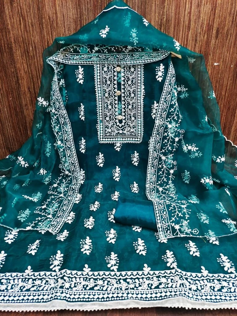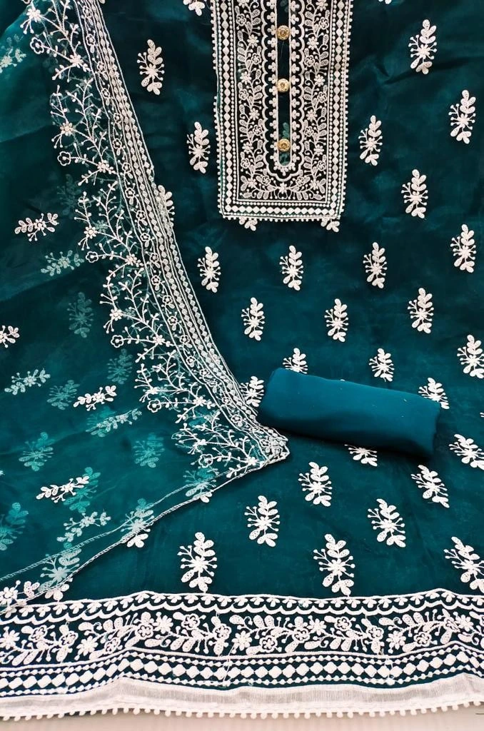 Whether you're attending a wedding, festive celebration, or special occasion, our Women's Organza with Embroidery Work Blue Dress Material is sure to make you the center of attention.