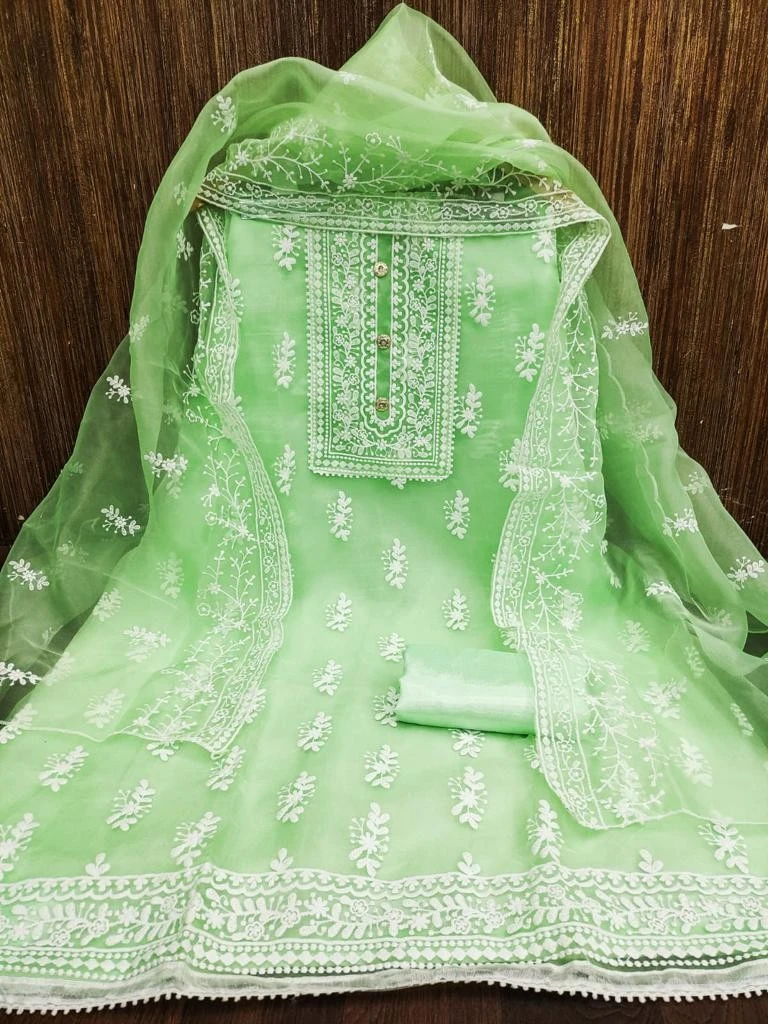 Womens ORGANZA WITH EMBROIDERY WORK Light Green Dress Material