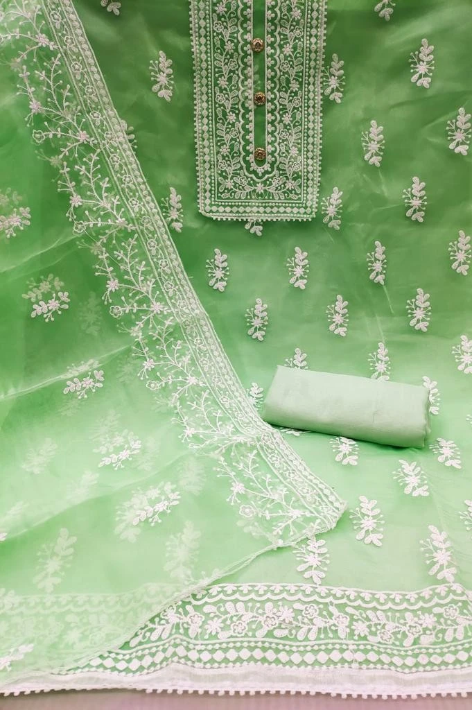 Whether you're attending a wedding, festive celebration, or special occasion, our Women's Organza with Embroidery Work Green Dress Material is sure to make you the center of attention.