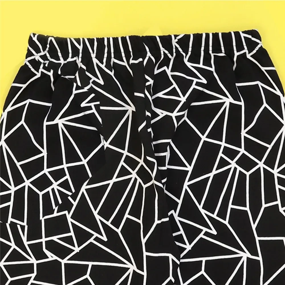 • Bottom Pattern: The pants come in a solid black color, providing a versatile and classic base that pairs effortlessly with the patterned top.