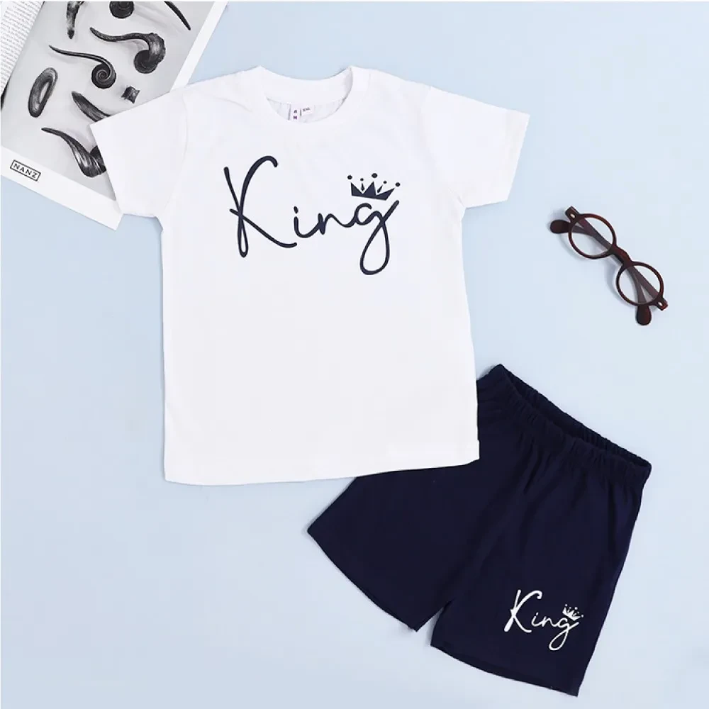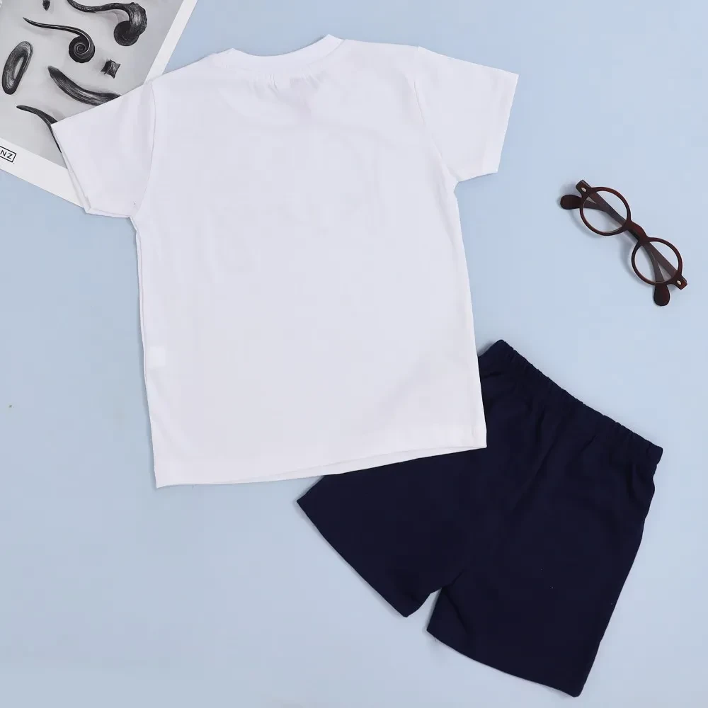Keep your little one looking sharp and feeling comfortable with our Boys' White T-Shirt and Blue Shorts Set. This classic and stylish outfit is perfect for any occasion, from playdates to family outings.
