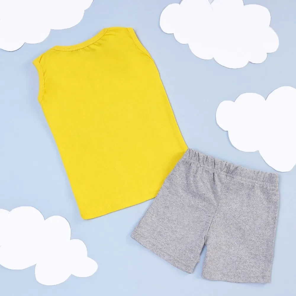 Kids Yellow Tshirt and Grey Shorts Clothing Set