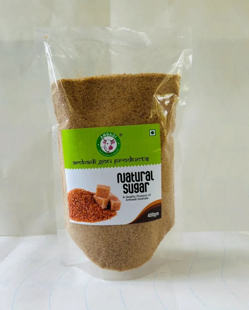 Ambadi goshala’s Natural sugar is an unrefined sugar produced traditionally from the sugar cane juice and a preferred alternative to refined sugar for those seeking a more natural sweetener option.