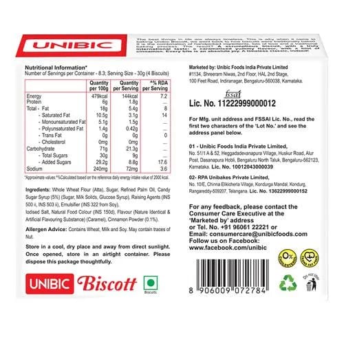 UNIBIC Biscott Caramel & Cinnamon Flavour Biscuits bring a sweet and spicy delight with every bite. Made with 100% Atta and 0% Maida, these biscuits promise a wholesome treat. Perfect for any time snacking.
