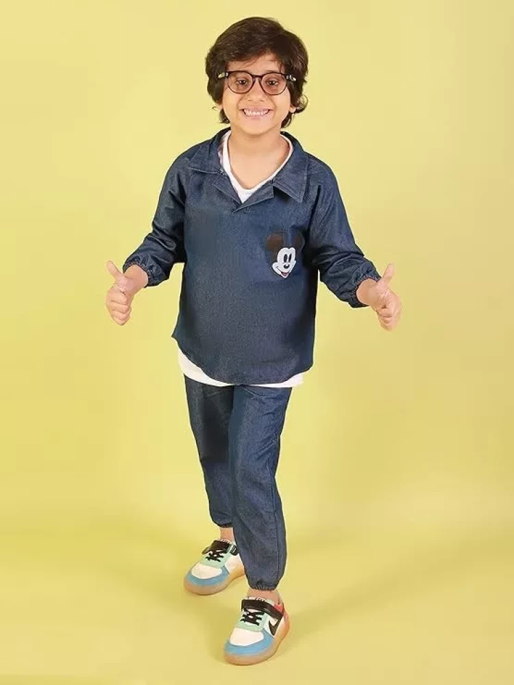 Ameeha Baby Boy Casual Clothing Denim jacket with t-shirt and pants Set 3Pcs Set Kids Summer Outfits Wearability- festive, party, ceremony, special occasion, wedding, diwali, Navratri, dussehra, marriages, pooja, birthday gift, christmas, onam, ganesha etc