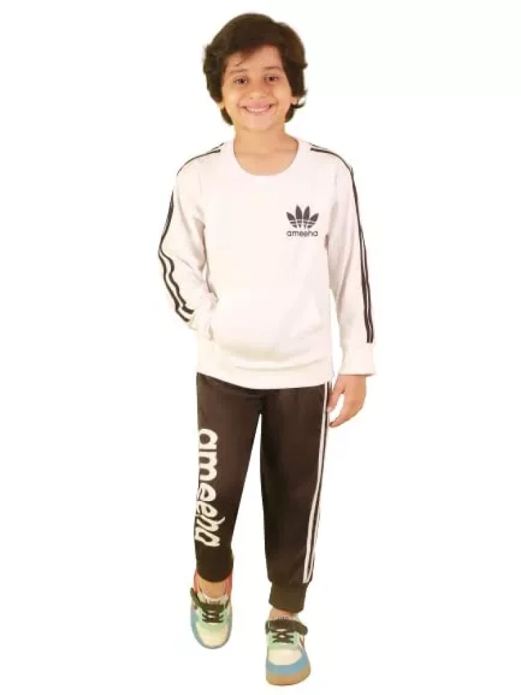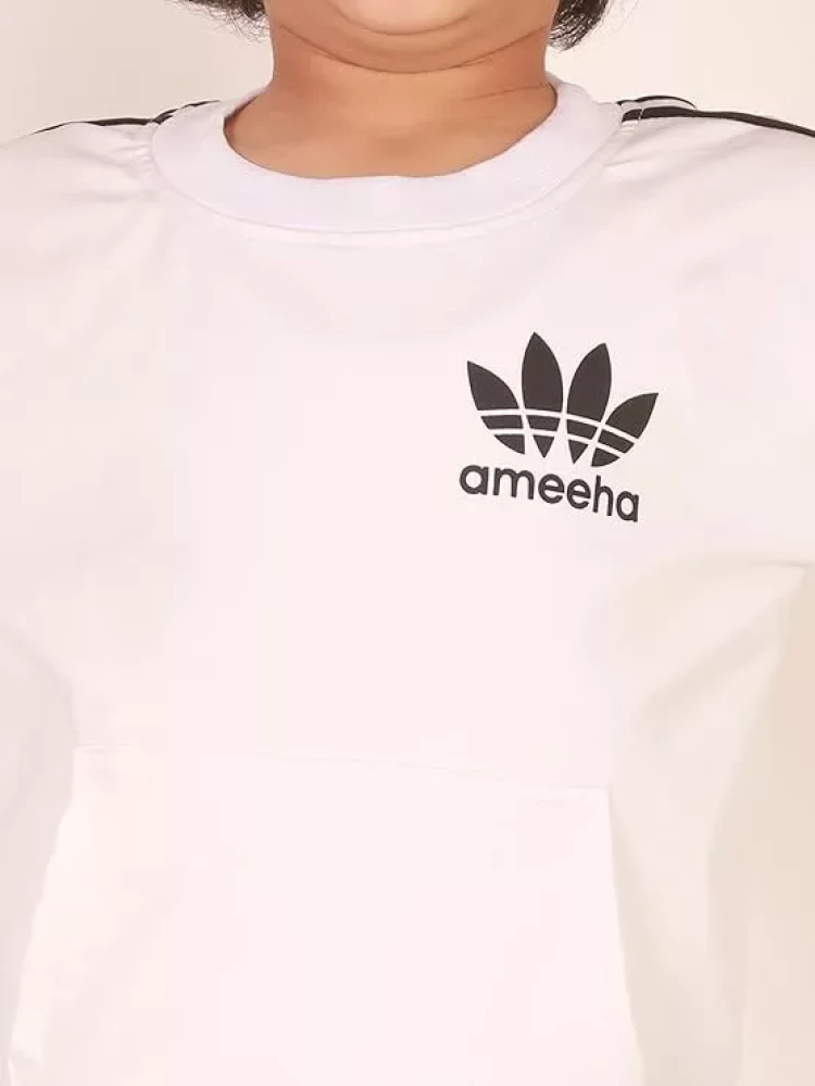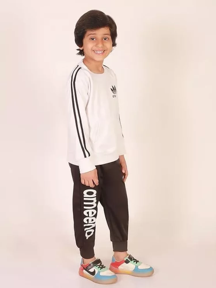 Ameeha Baby Boys and Girls Full Sleeve Printed White and Black T Shirt and Pant Set