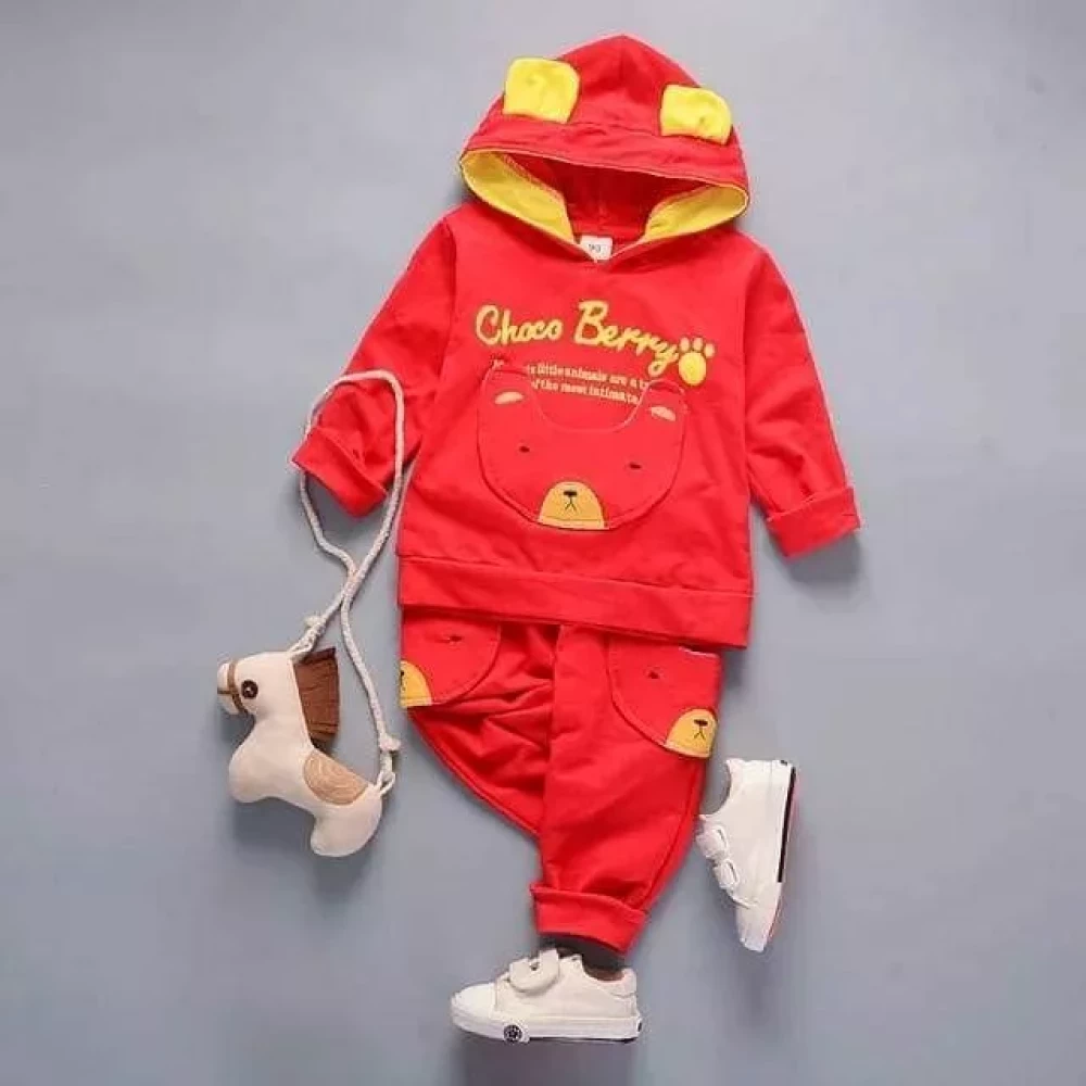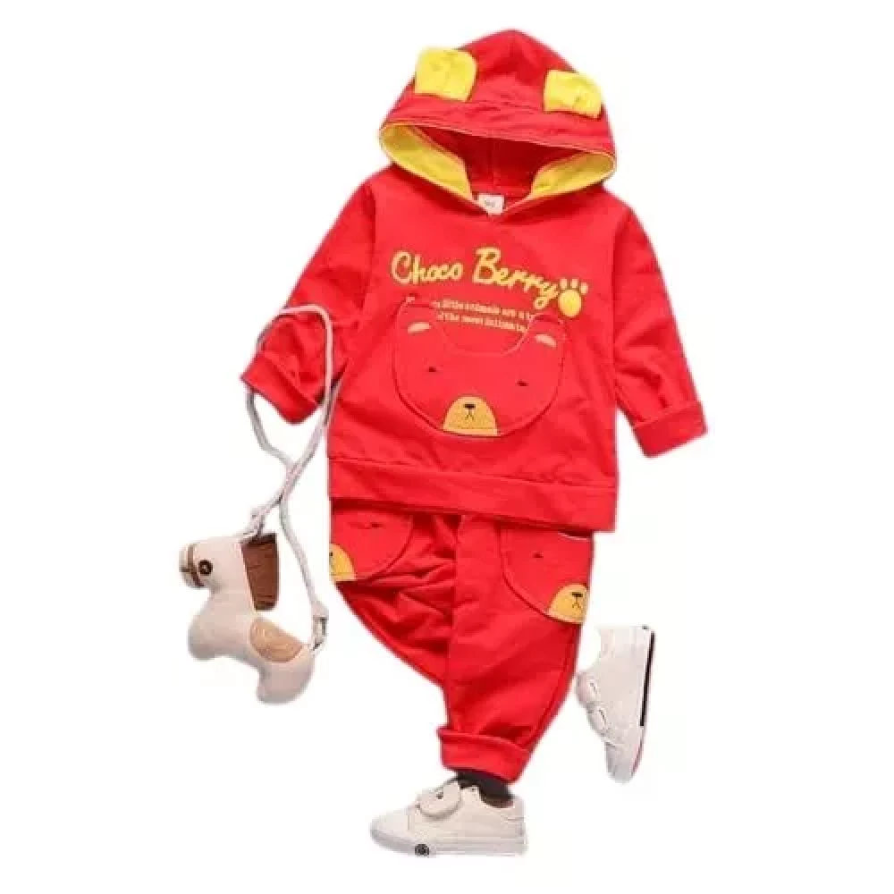 Ameeha Choco Berry Fleece Red Sweatsuit Hooded Pullover Tracksuit Kids Boys and Girls