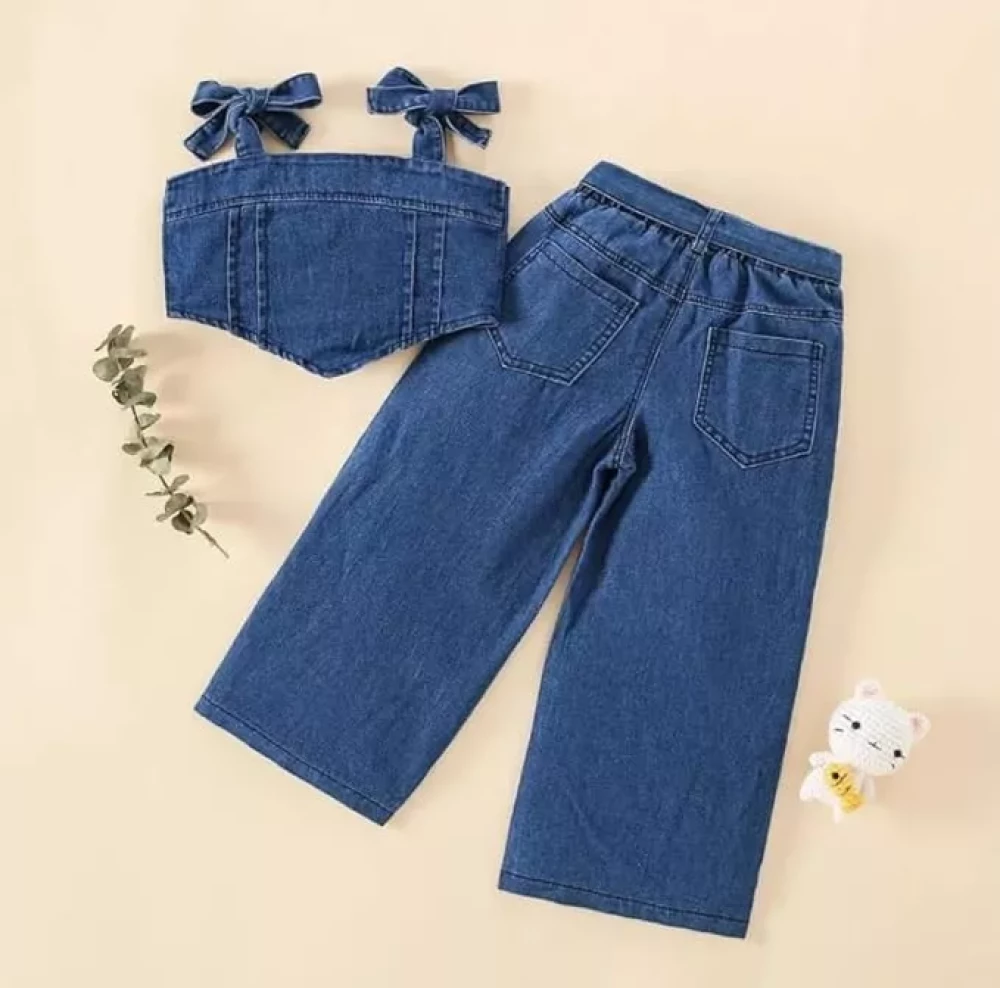Ameeha Girls Denim Top And wide leg jeans Co Ords Set Dress