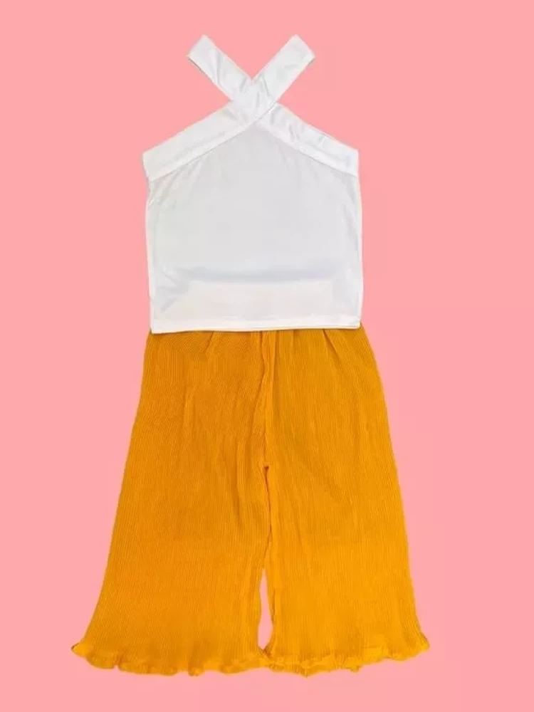 Ameeha Girls Stylish Wear Crop White Top with Yellow Palazzo Set