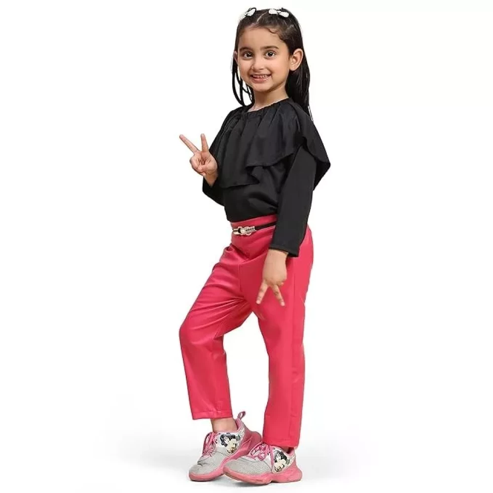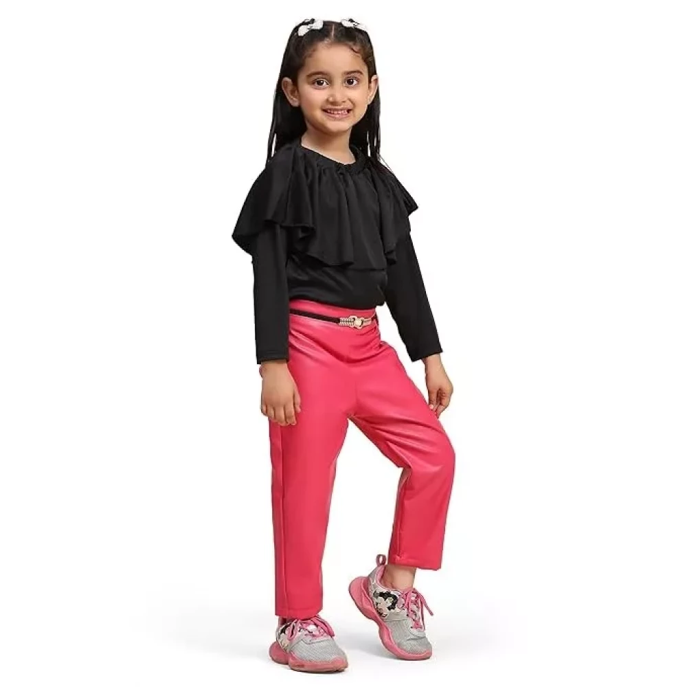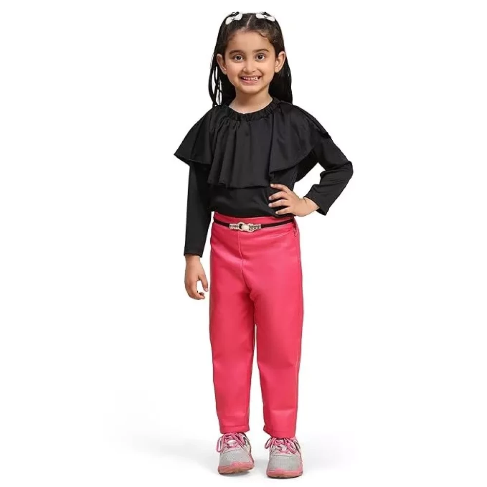 Ameeha Kids Wear 2 Piece Outfits Top And Pu Leather Pants with Belt