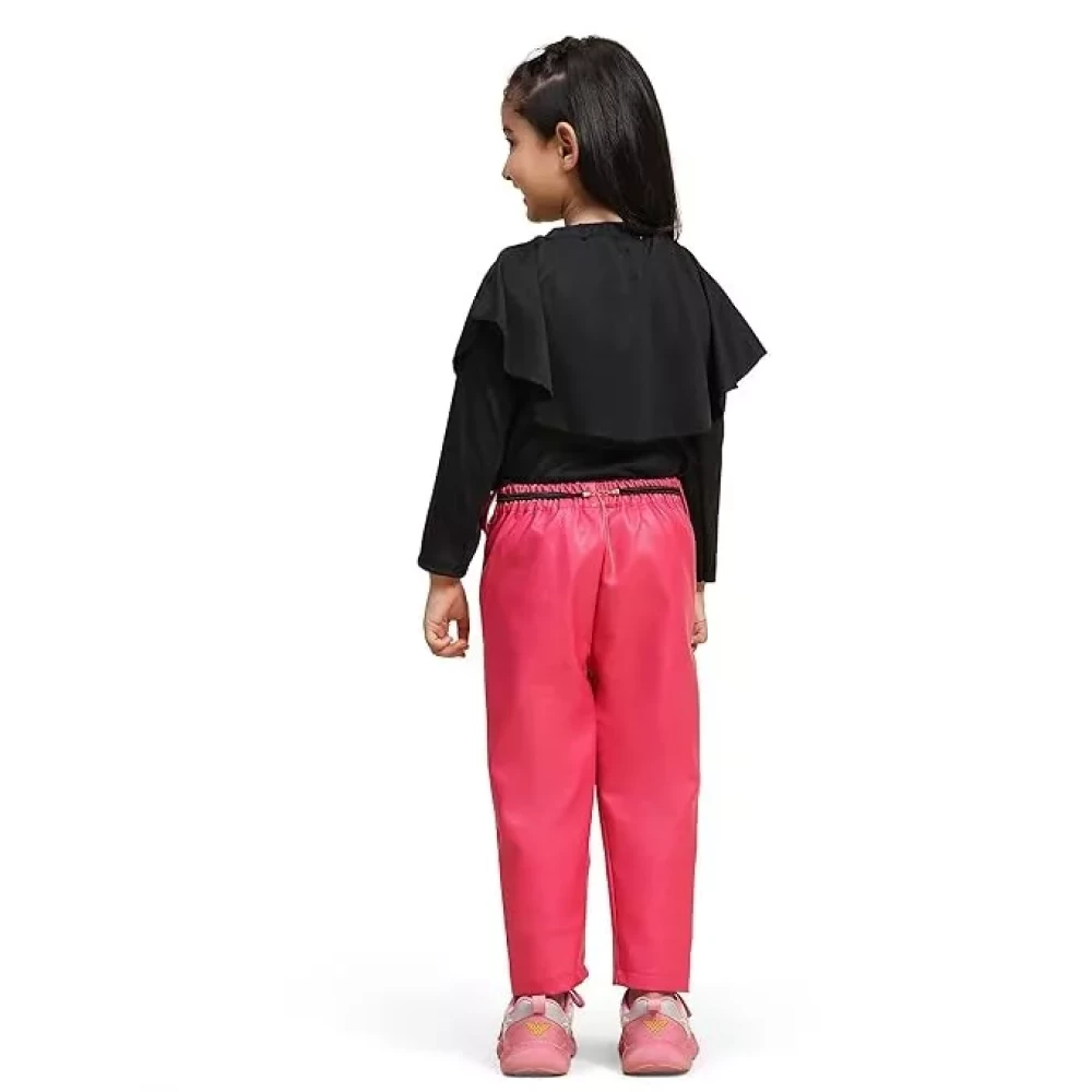 Ameeha Kids 2 Piece Outfits Top And Pu Leather Pants Clothing Set for Girl's, Occasion: Great for casual, daily, party or photoshoot, also a great idea for a baby show gifts, New Year, stage performances, photo shooting, weekend casual, home, daily wear, street wear, holidays, party or daily life