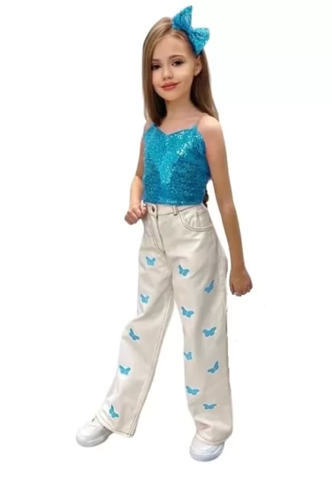 Ameeha Kids Wear Girls 2 Pieces Top and Butterfly Print Wide Leg Pants