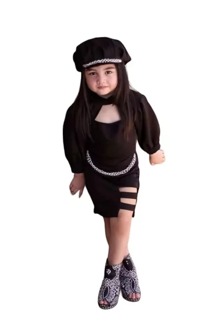 Ameeha Kids Wear Girls Midi Knee Length Bodycon Black Dress