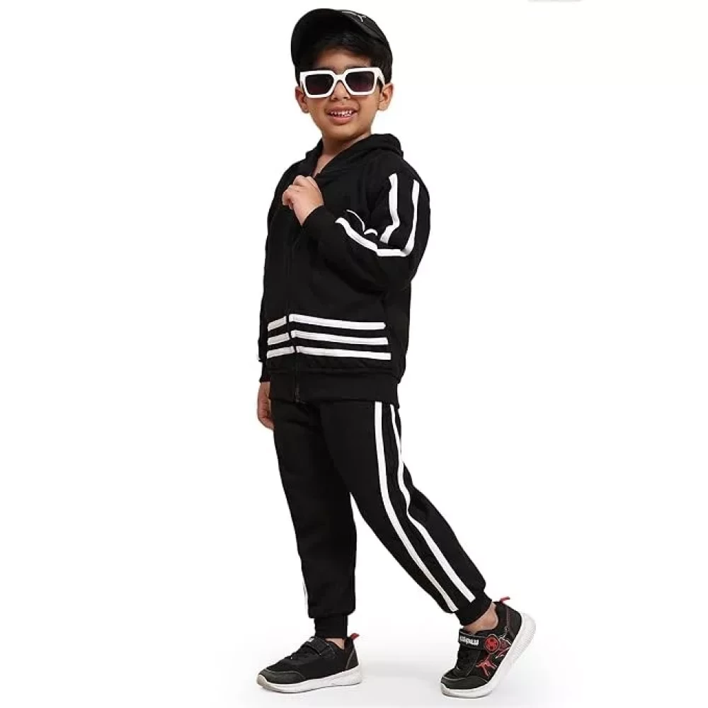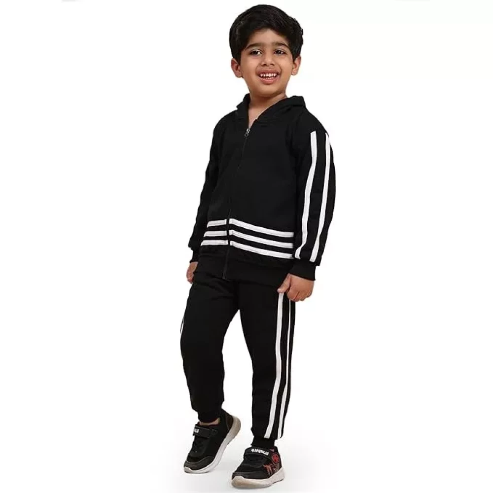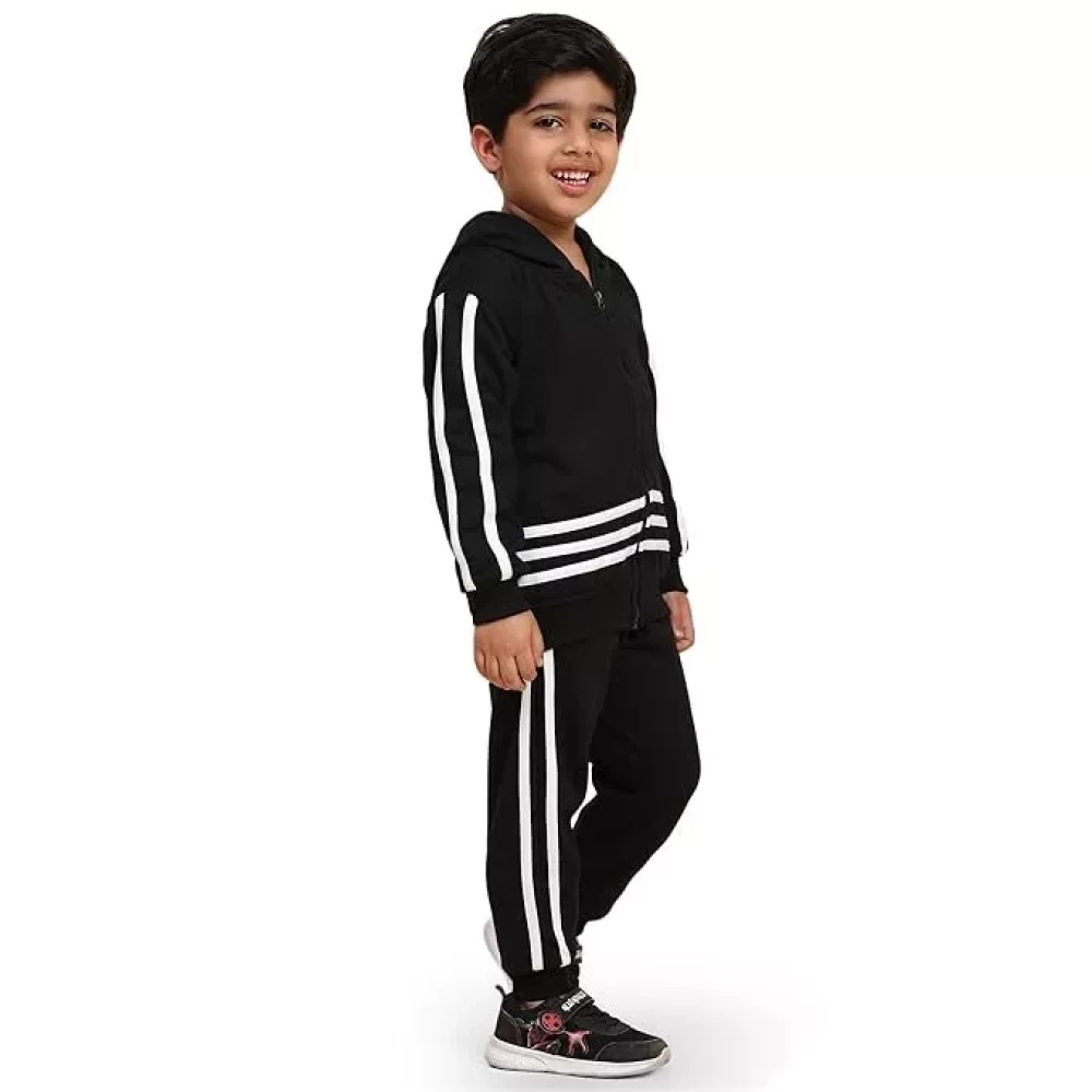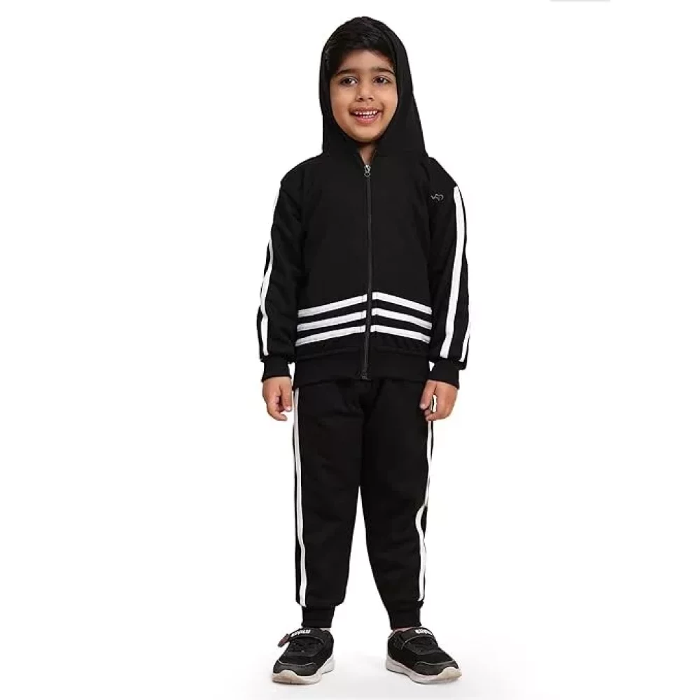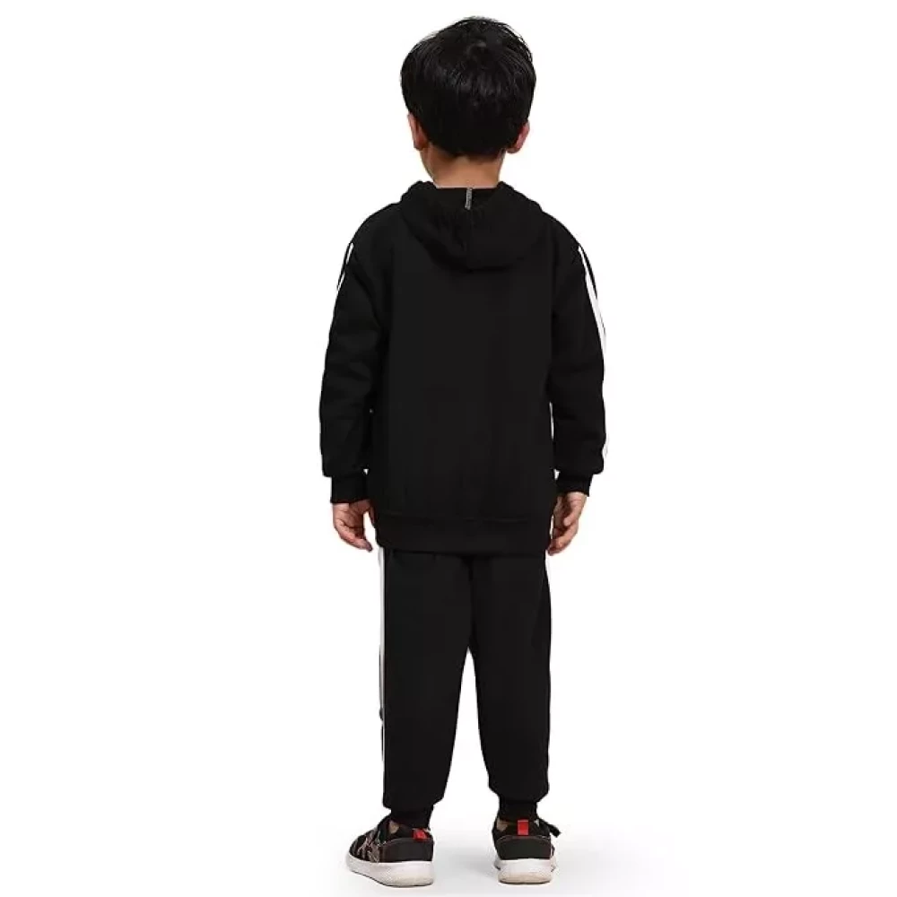 Ameeha Kids Winter Wear Hoodie Sweatshirt with Joggers Black Clothing Set for Boys and Girls