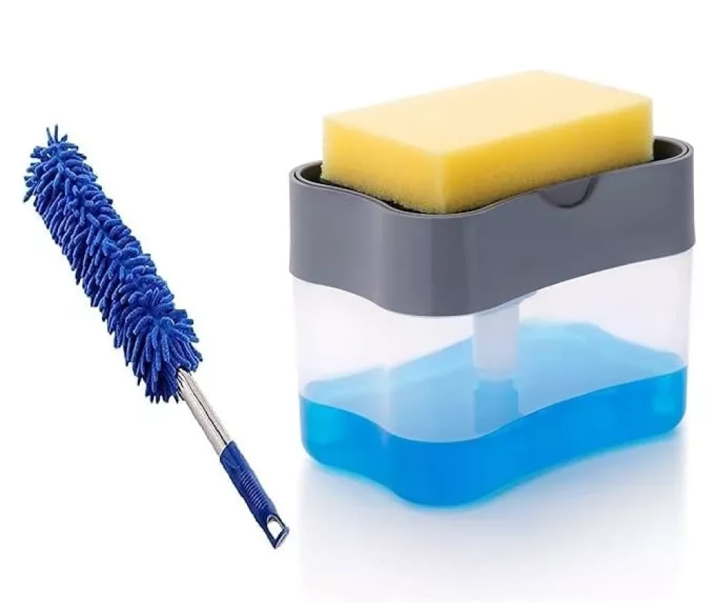 AMEEHA Wet and Dry Duster and 1 Plastic Soap Pump Dispenser with Holder Duster