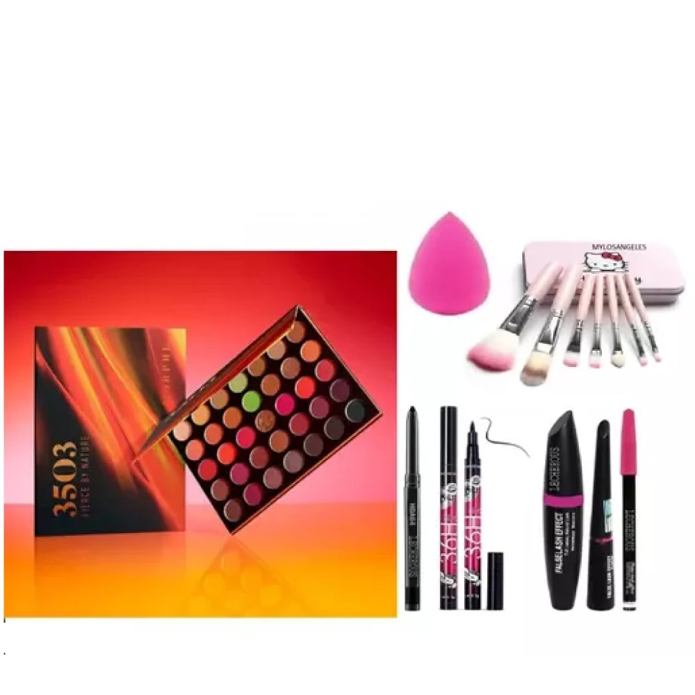 Product Name : MYLOSANGELES Eyeshadow 3305 Beauty Glazed Eyeshadow, Kajal, 36H Eyeliner, 3in1 Mascara, Makeup Blender with 7pcs Makeup Brushes.