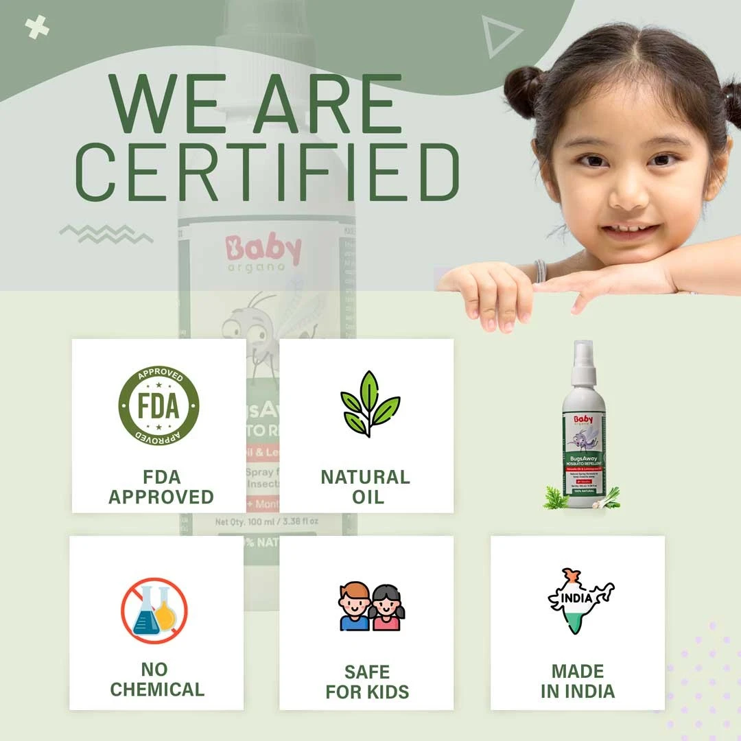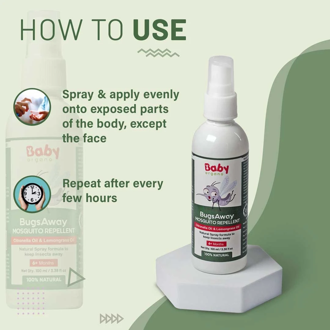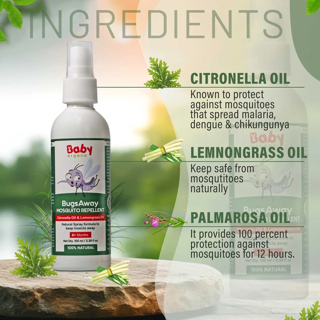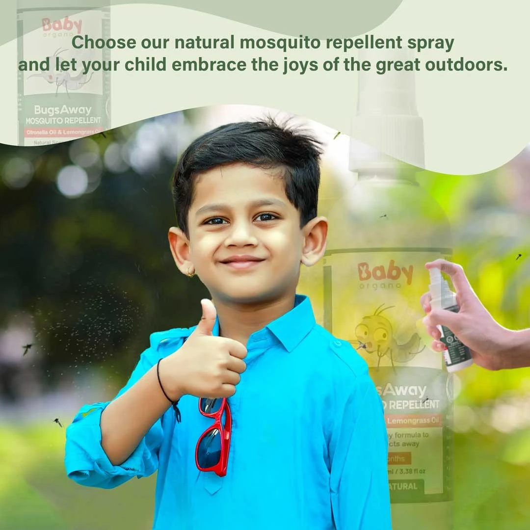 BabyOrgano Mosquito Repellent Spray, designed specifically for kids. Protect your little ones from pesky mosquito bites with this safe and effective solution. Our gentle formula is carefully crafted using natural ingredients that have been proven to repel mosquitoes. This kid-friendly repellent spray is free from harmful chemicals like DEET, making it a safer choice for children's sensitive skin.