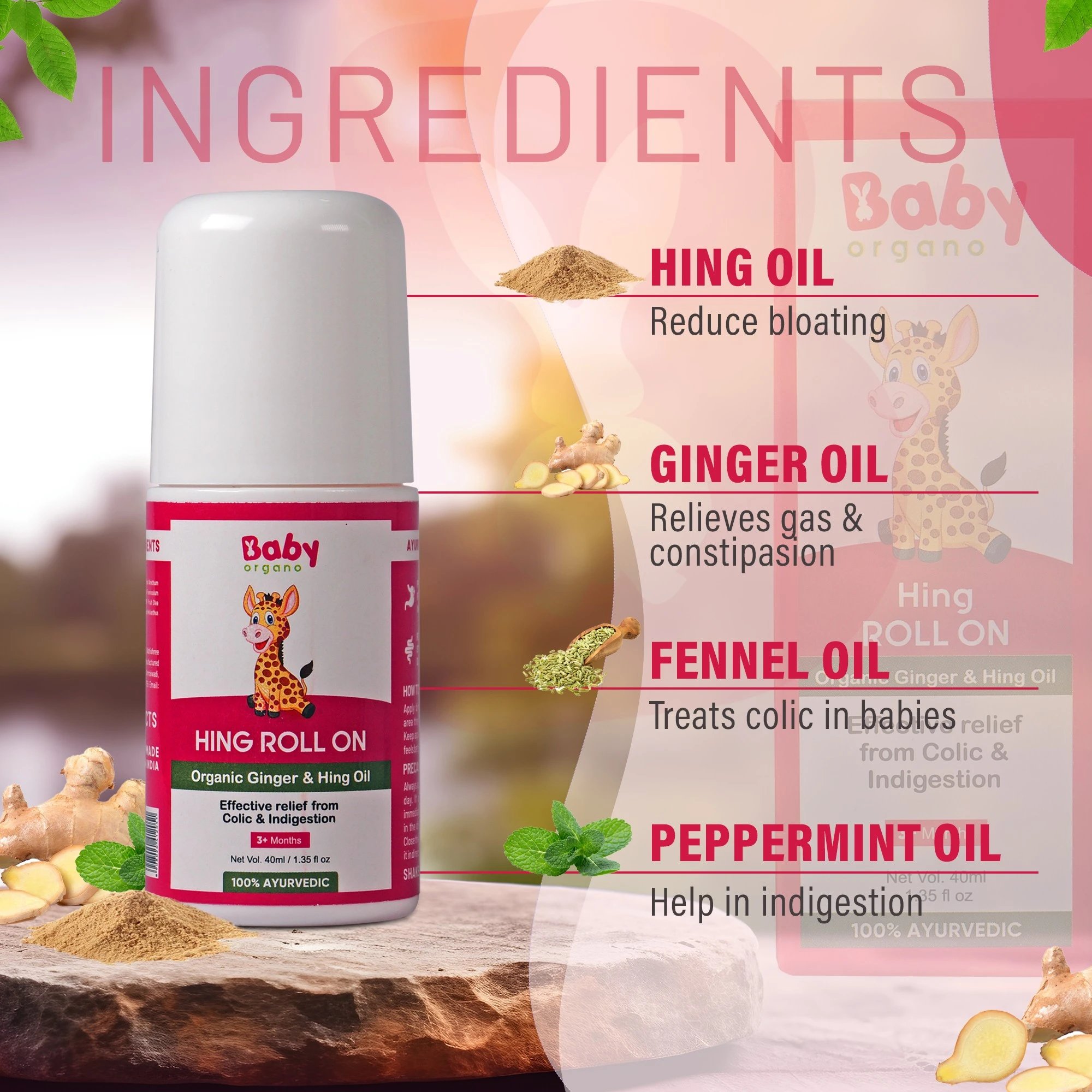BabyOrgano Hing Roll On - Gives Relief from Colic Pain, Constipation and Indigestion