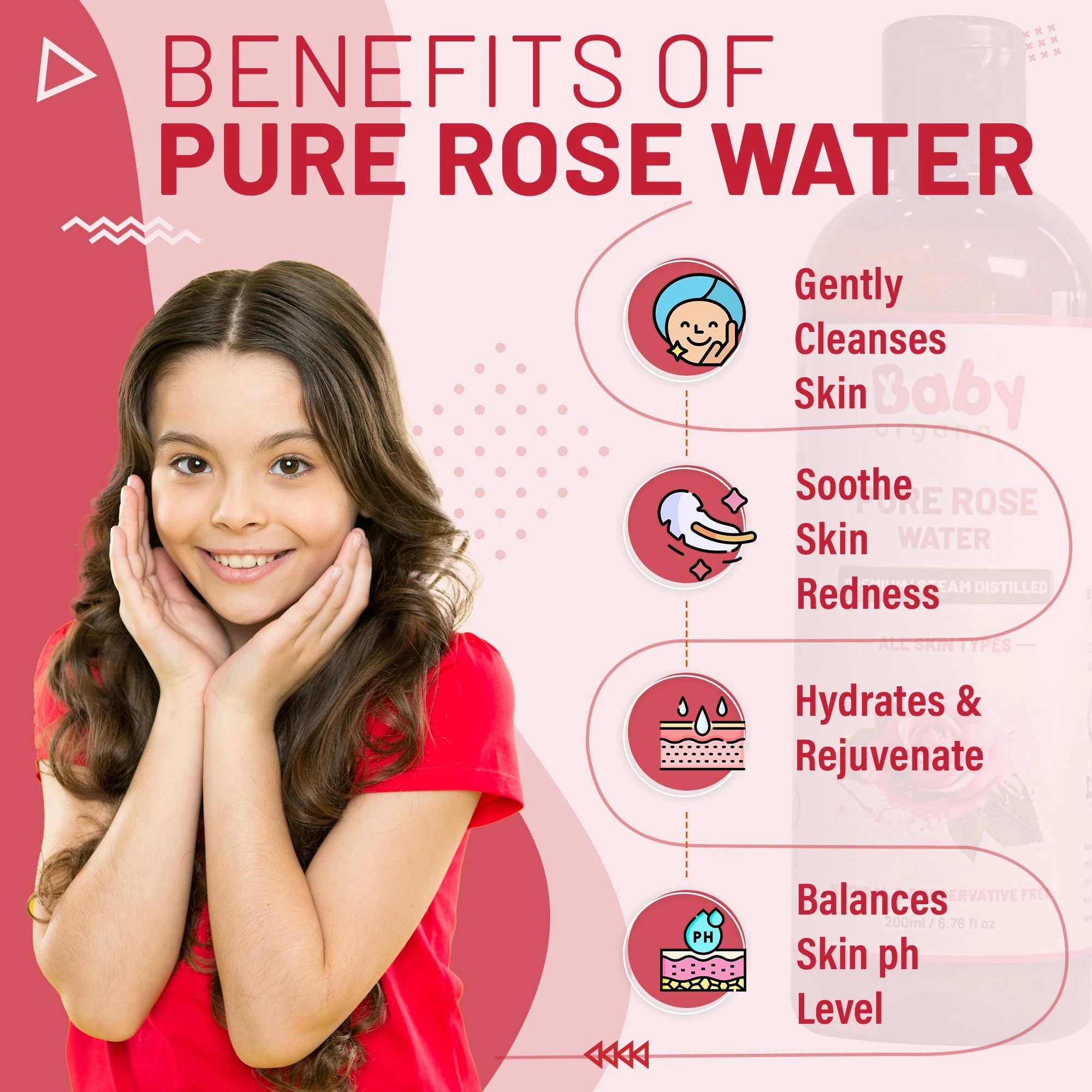 BabyOrgano Pure Rose Water Made with of Rose Petals Natural and Preservative Free