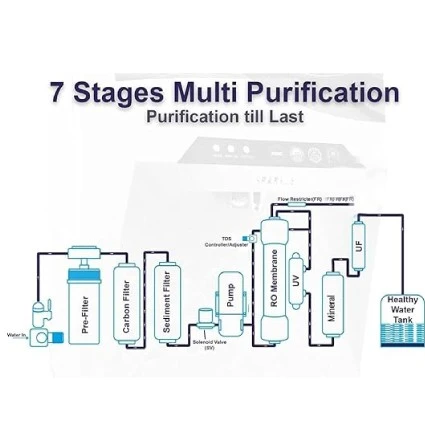 • Featuring a Sediment Filter, this water purifier can efficiently eliminate dust, dirt, mud, and sand from the drinking water at the beginning.