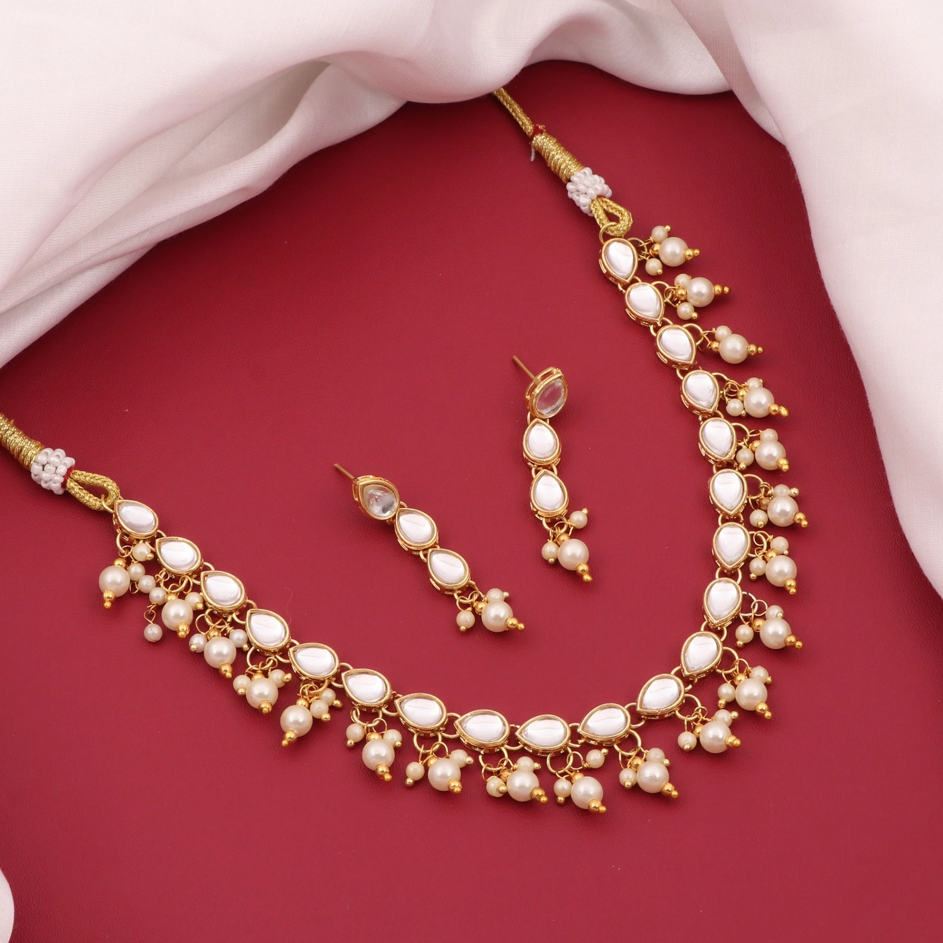 Alloy Cubic Zirconia Cream Kundan Necklace Set For Women