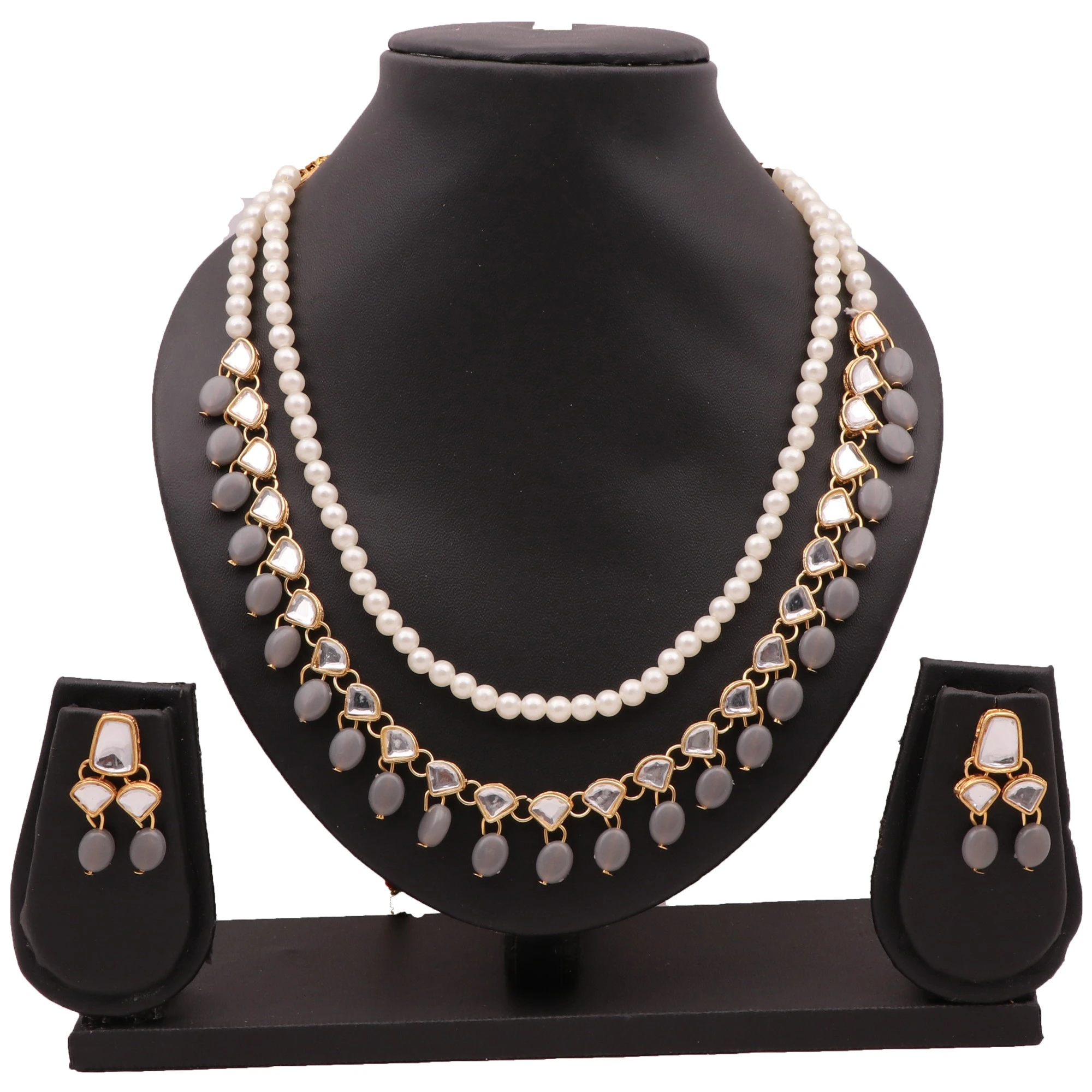 Two Layer Dark Brown Kundan Necklace Set With Earring For Woman And Girl