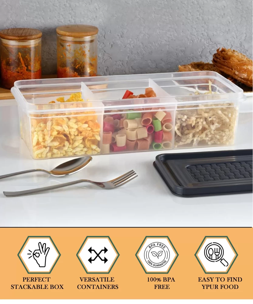 3 Partitions per Box: Each box has three separate sections, allowing you to neatly organize different types of food (e.g., fruits, vegetables, dry items, and liquids).