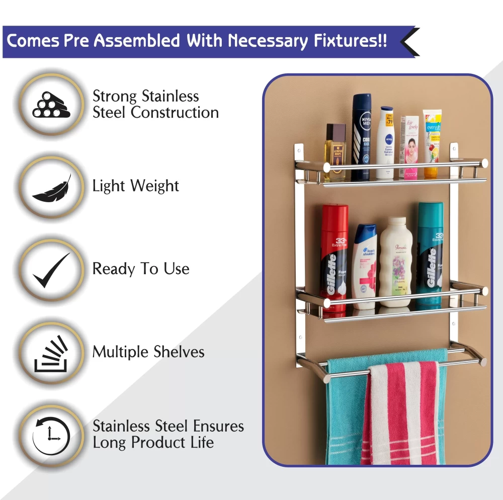 This sleek, modern shelf is designed for both style and practicality. Featuring a sturdy stainless steel construction, it provides ample storage space for your bathroom or kitchen needs while keeping your towels neatly hung. With its rust-resistant and durable design, this shelf is built to last, making it a smart addition to any space.