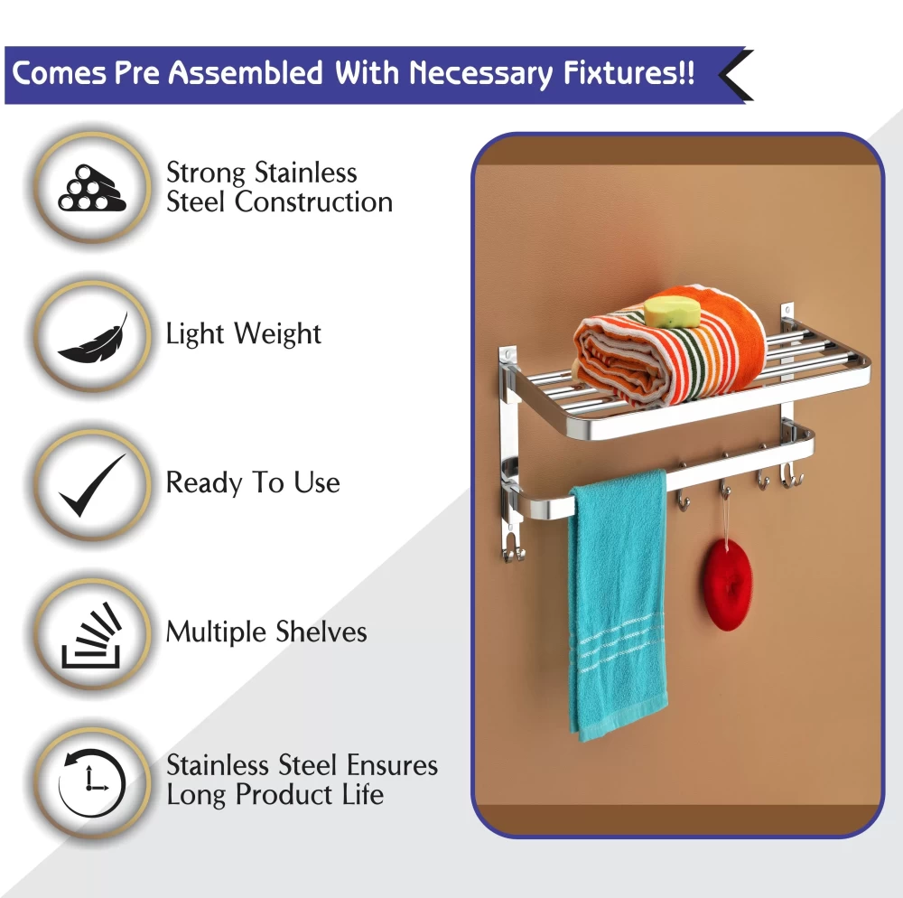 • Upgrade your bathroom with the BUMBERELL Stainless Steel Folding Towel Rack, designed for maximum functionality, durability, and elegance. This sleek, wall-mounted rack helps you keep your towels organized while saving space, making it a must-have for modern bathrooms, kitchens, and laundry areas.