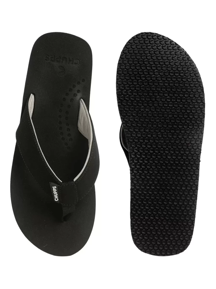- The Chupps WYLD V-Strap Men's Flipflop Slippers provide you with the utmost comfort in a flip-flop. The flip-flops' overall style is enhanced by their all-black color and slight dotted grip pattern on one side of the sole.