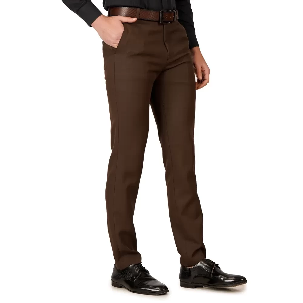Mens Formal Poly Cotton Slim Polo Fit Trouser Chocolate Brown