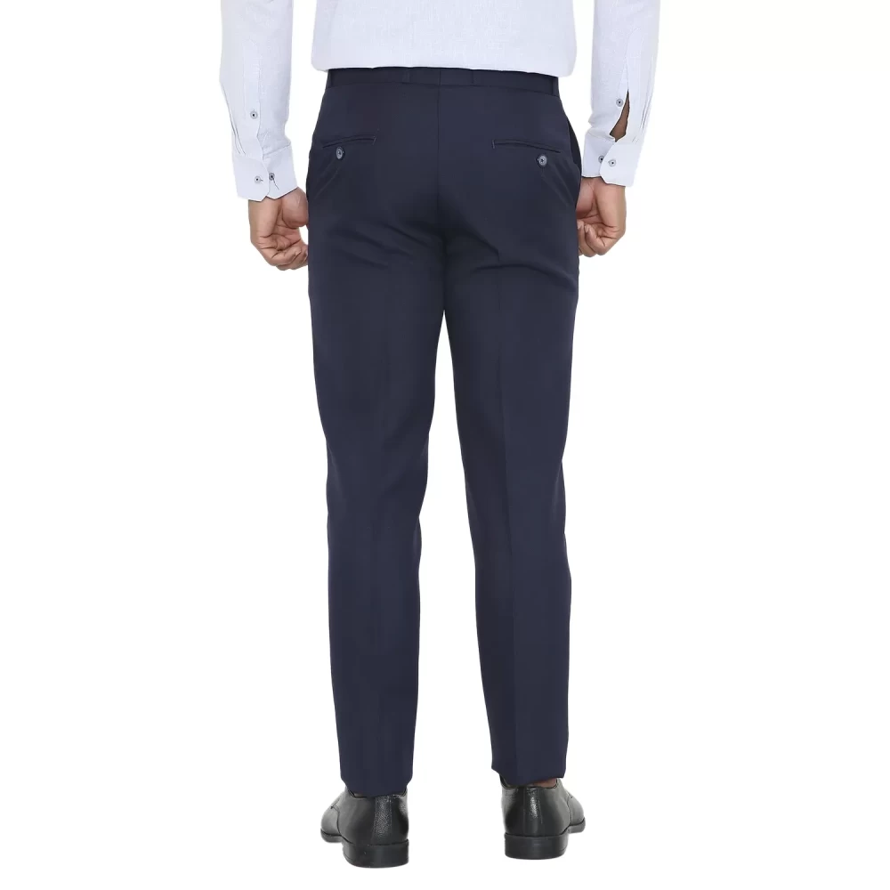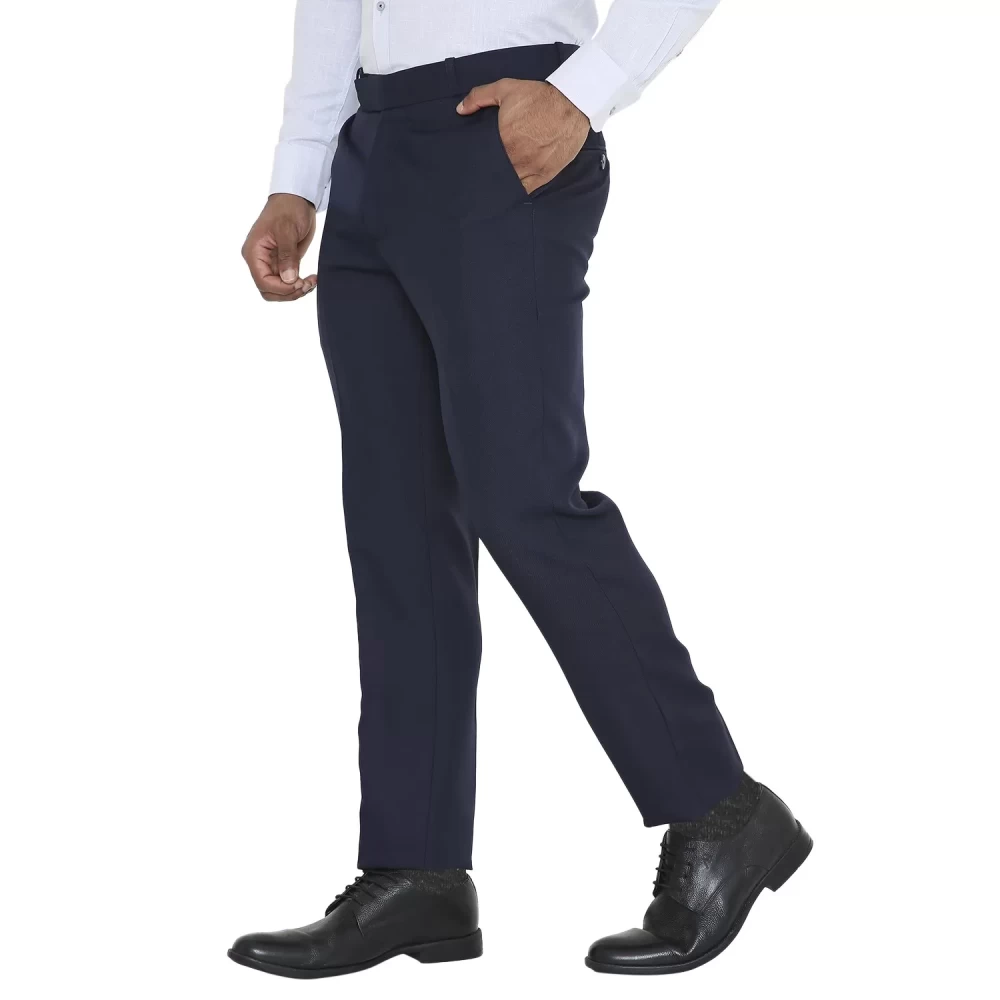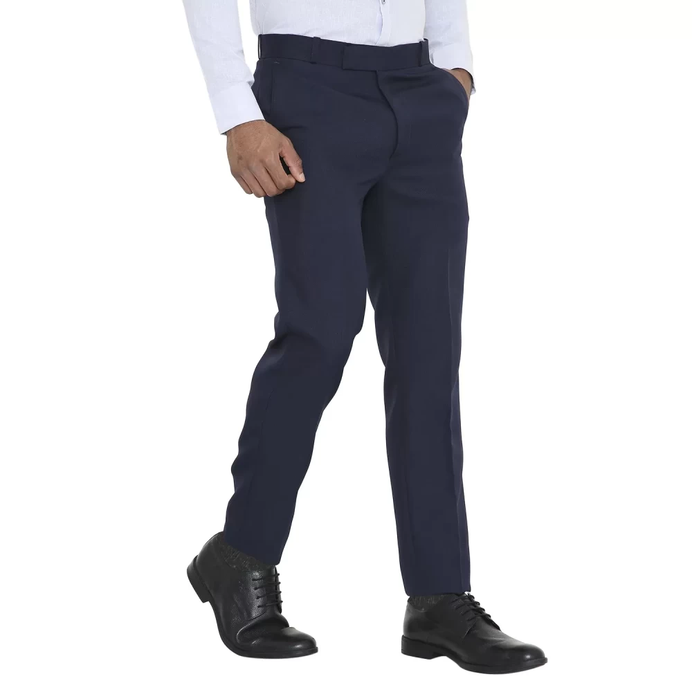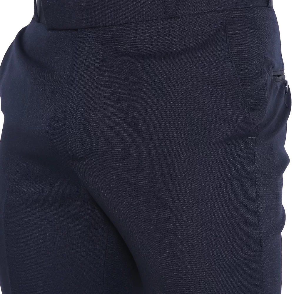 Mens Formal Wrinkle Free Poly Cotton Slim Polo Fit Trouser Navy Blue