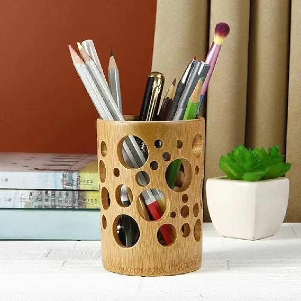 Keep your workspace neat and naturally elegant with this Bamboo Pen Stand. Crafted from durable and eco-friendly bamboo, this pen holder adds a touch of earthy charm while helping you stay organized.