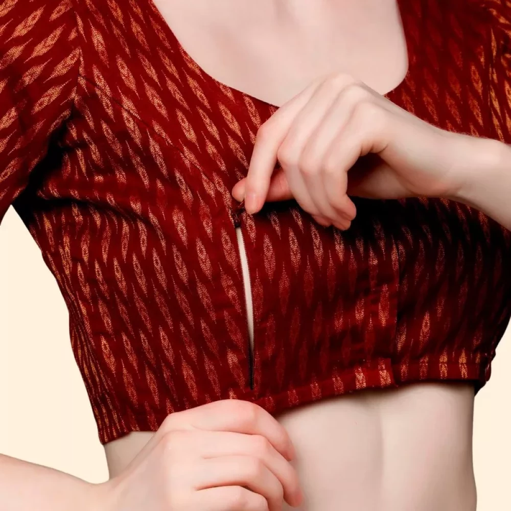 Functional Feeding Zip For Effortless Nursing: Redefining breastfeeding convenience, our blouses feature a discreet YKK zip, enabling mothers to nurse discreetly. This design fosters a seamless and stress-free experience, enhancing the bond between mother and child.
