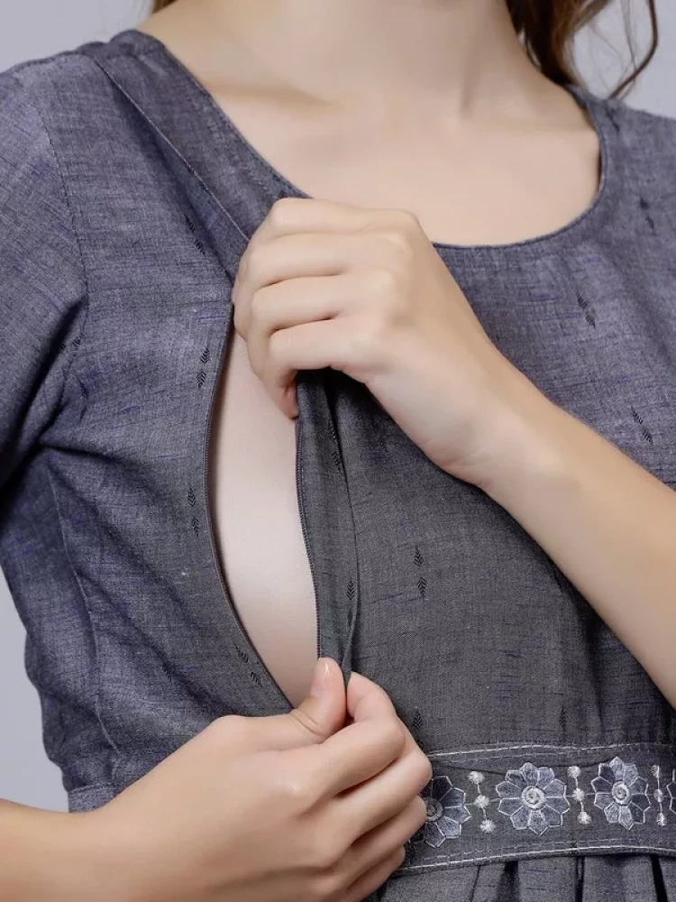 Feeding Topwear For Mothers With Zip: Seamlessly transition from casual outings to formal events with our versatile dress. Whether it's a relaxed day out or a special gathering, our kurtis ensure you look and feel your best, making them essential pieces for your maternity wardrobe. Designed to suit various festivals and celebrations, they offer effortless elegance and comfort for women during pregnancy and beyond, catering to your diverse lifestyle needs.
