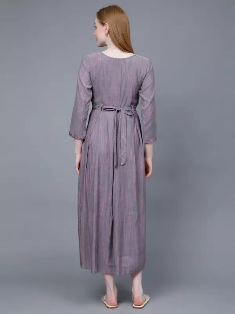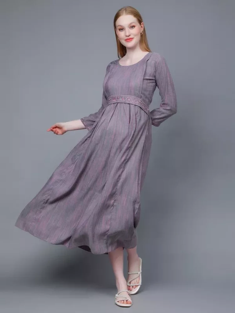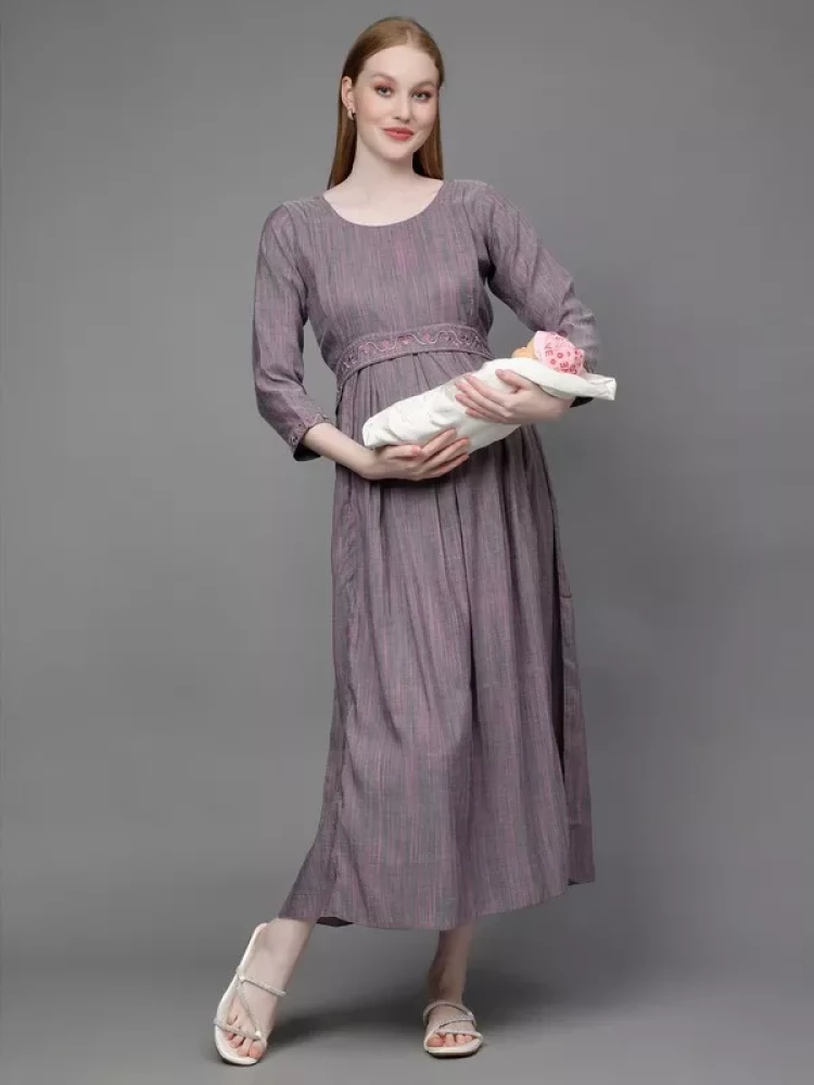 Greyish Purple Feeding Kurta For Pregnancy
